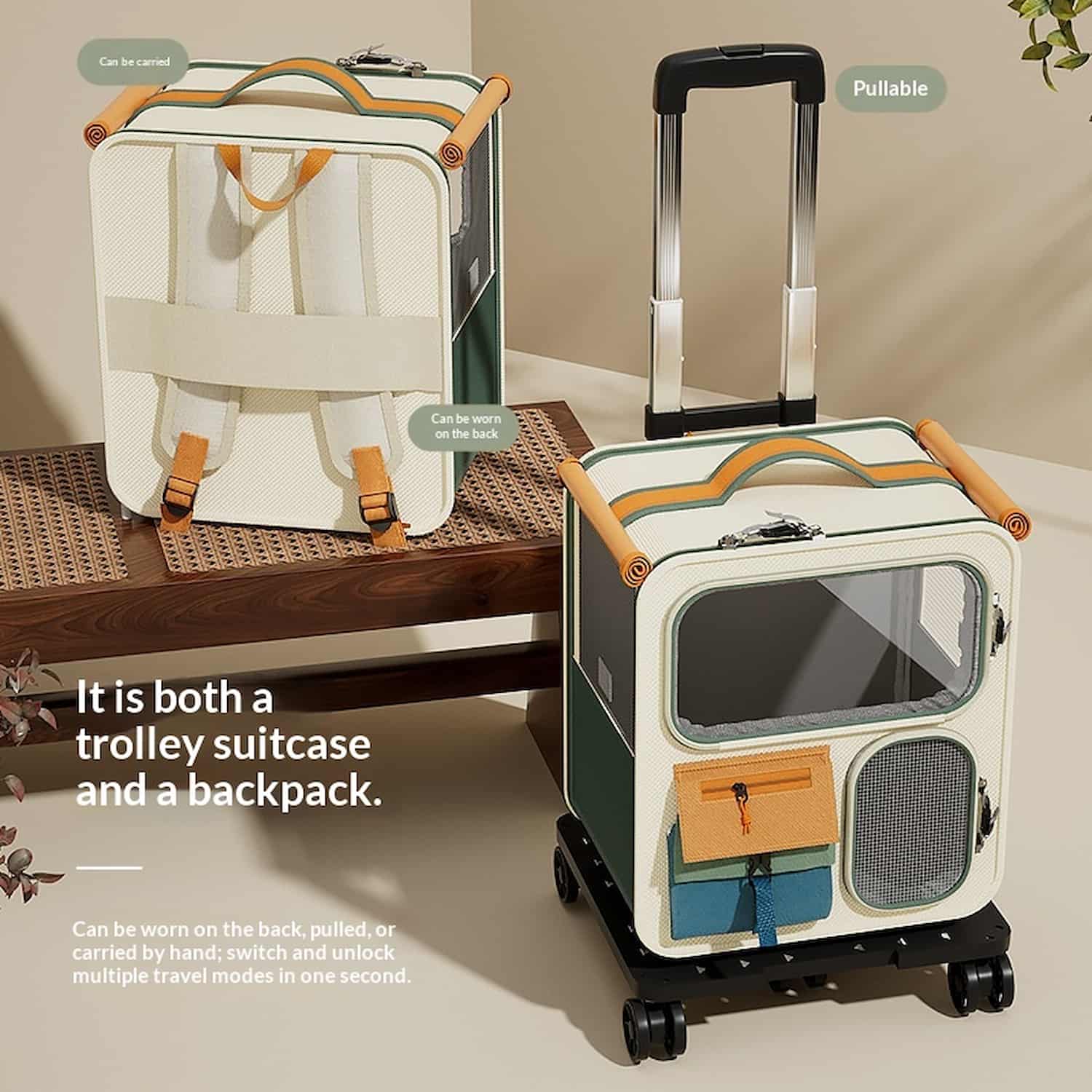 3-in-1 Pet Carrier, Trolley Backpack Hand-Carry, Feeding Window
