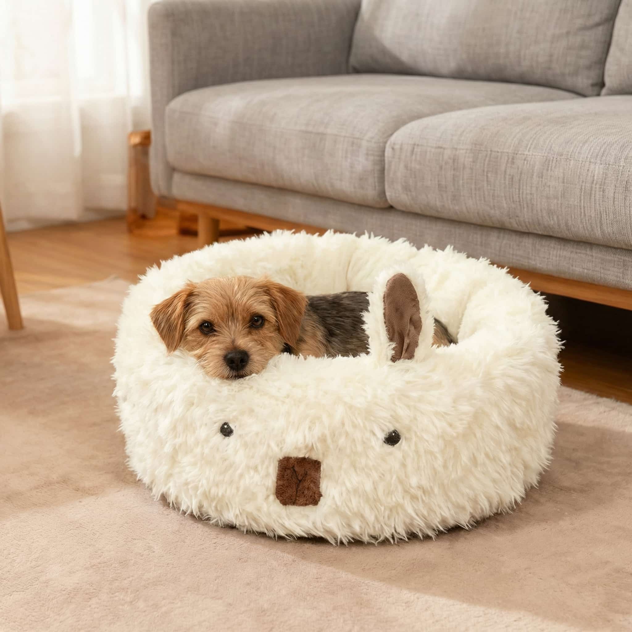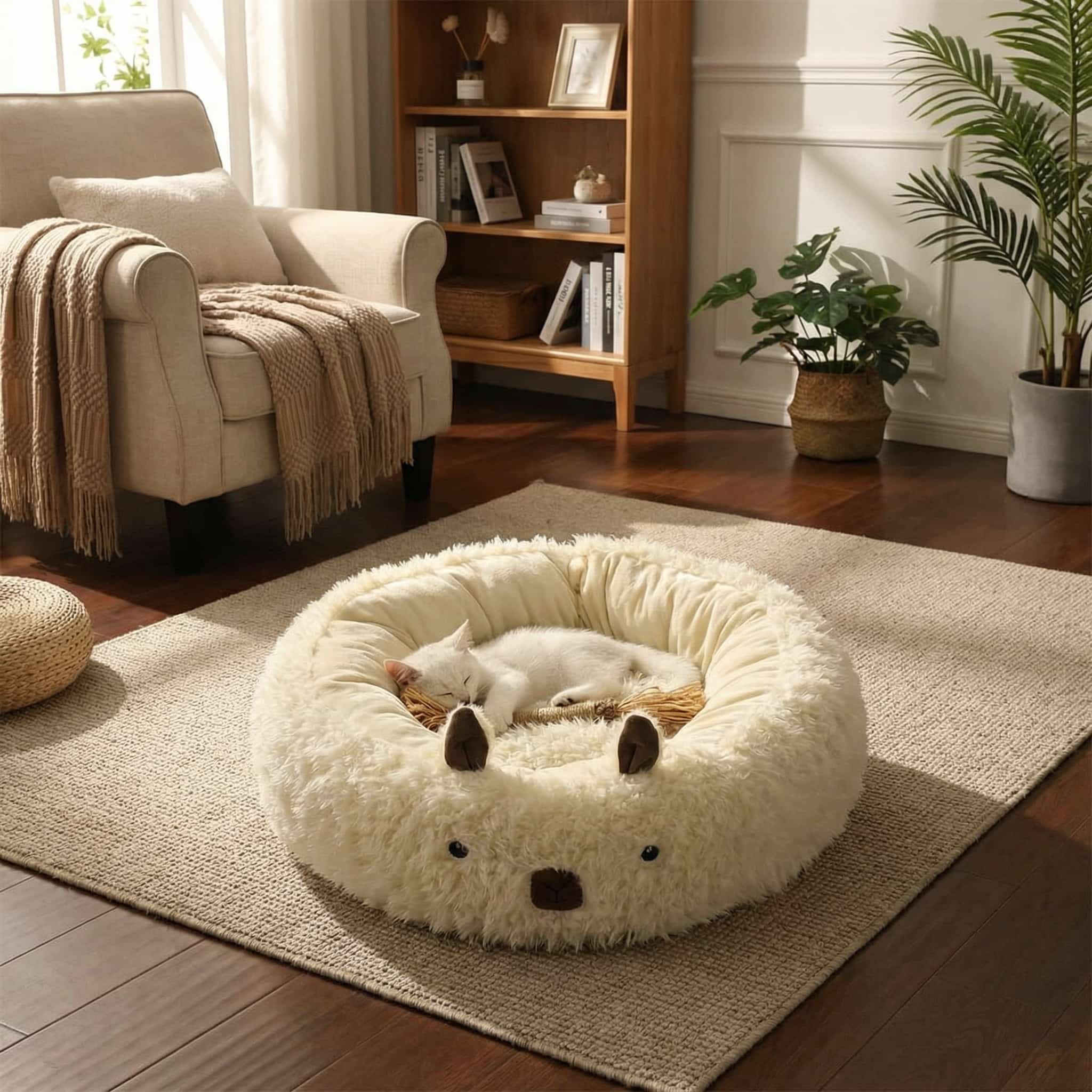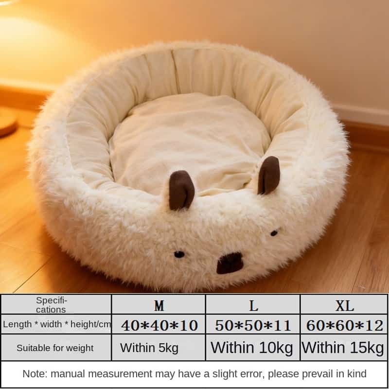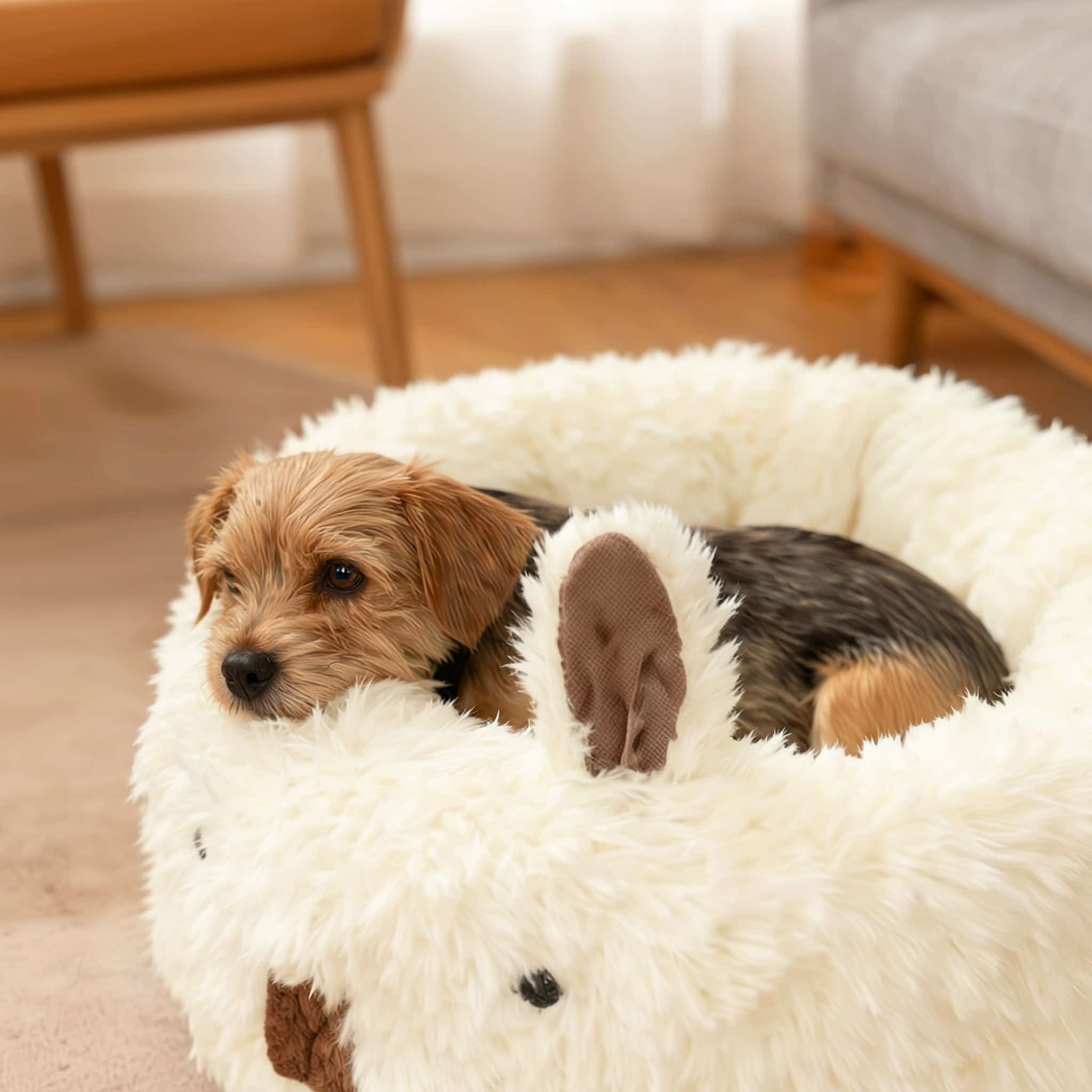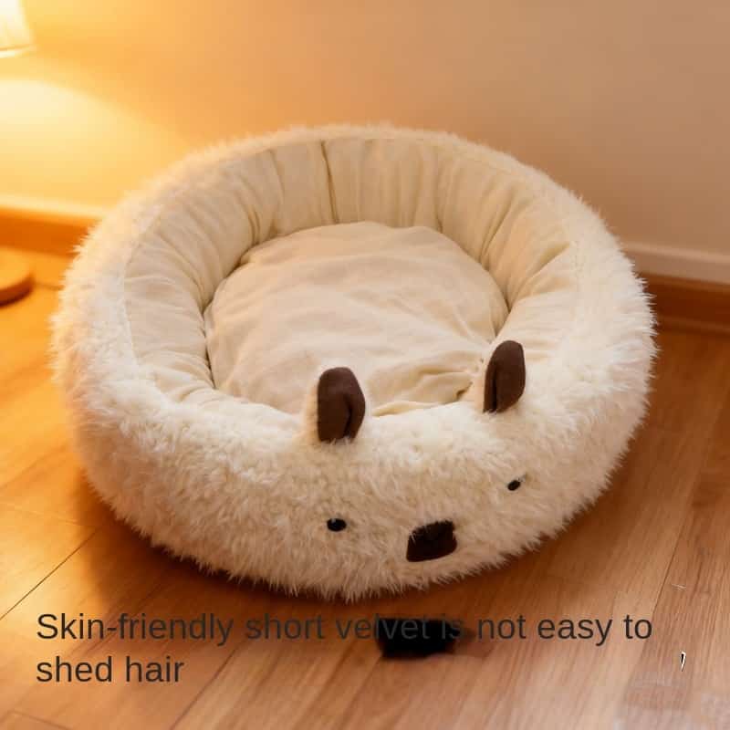 Winter warm alpaca bed with half-enclosed design that reduces anxiety by creating den-like environment.