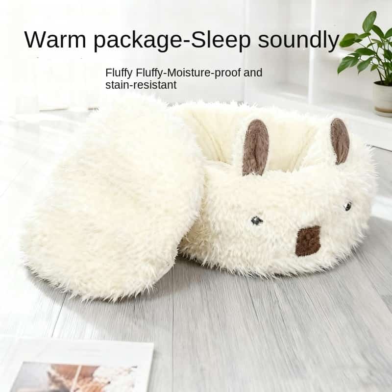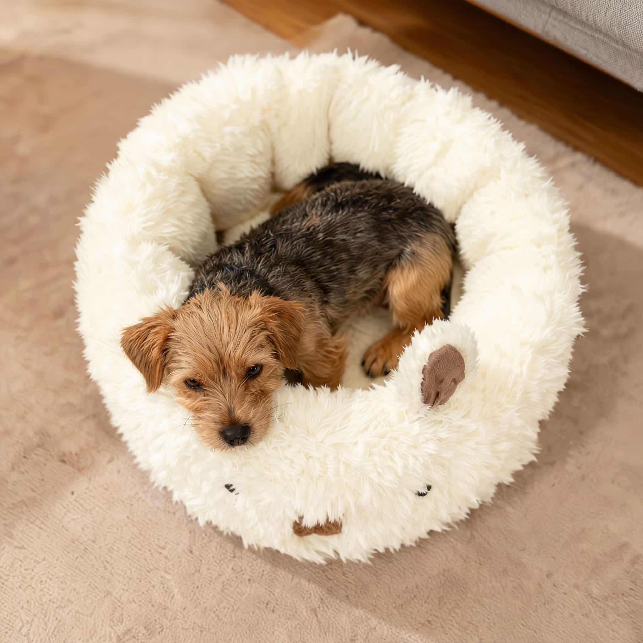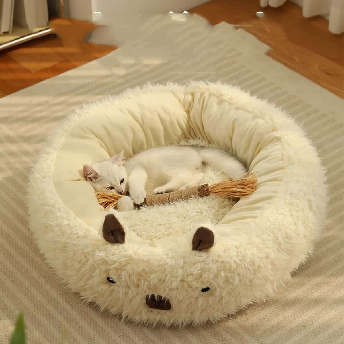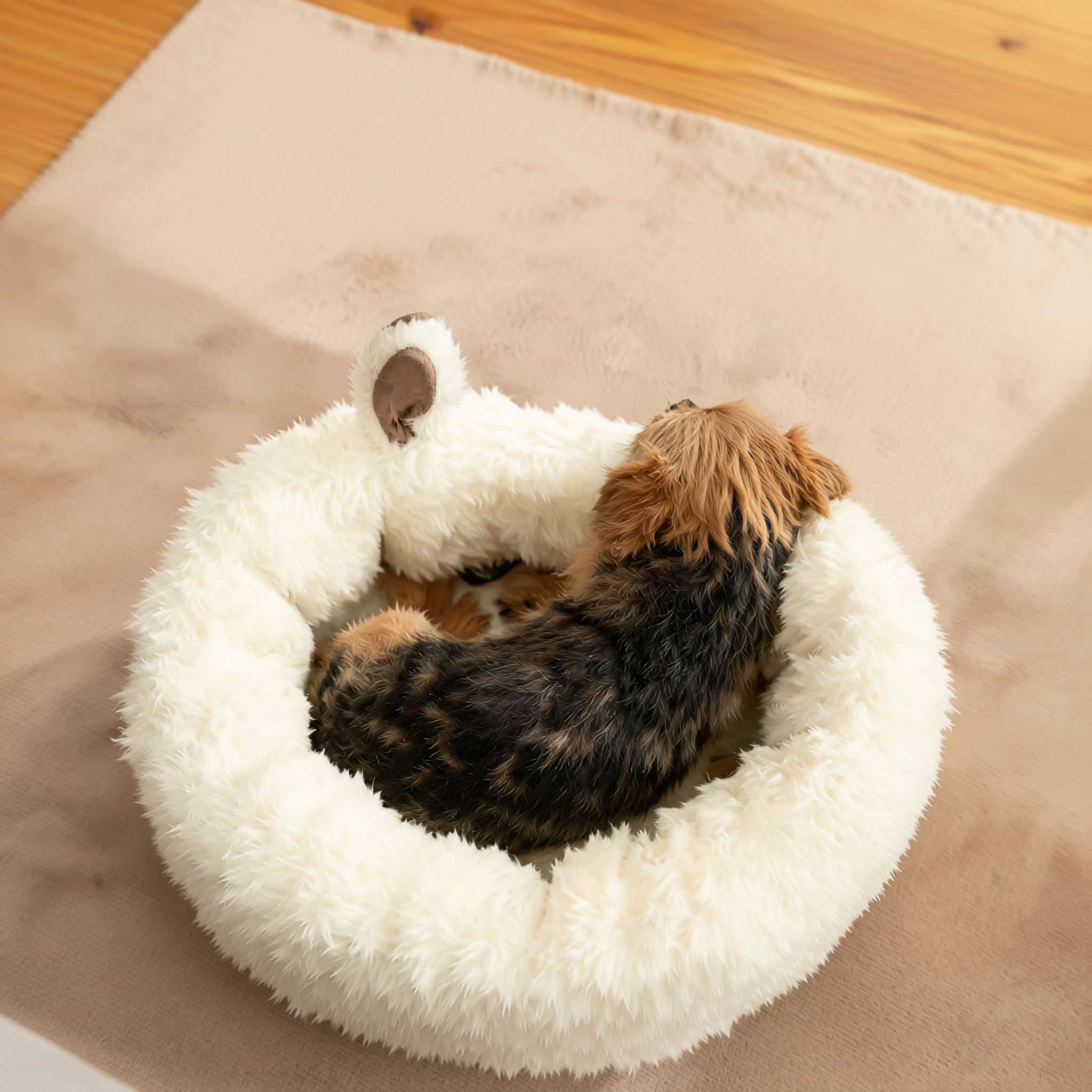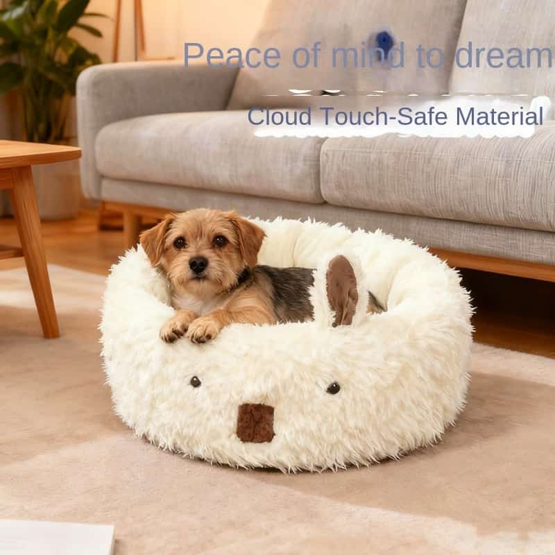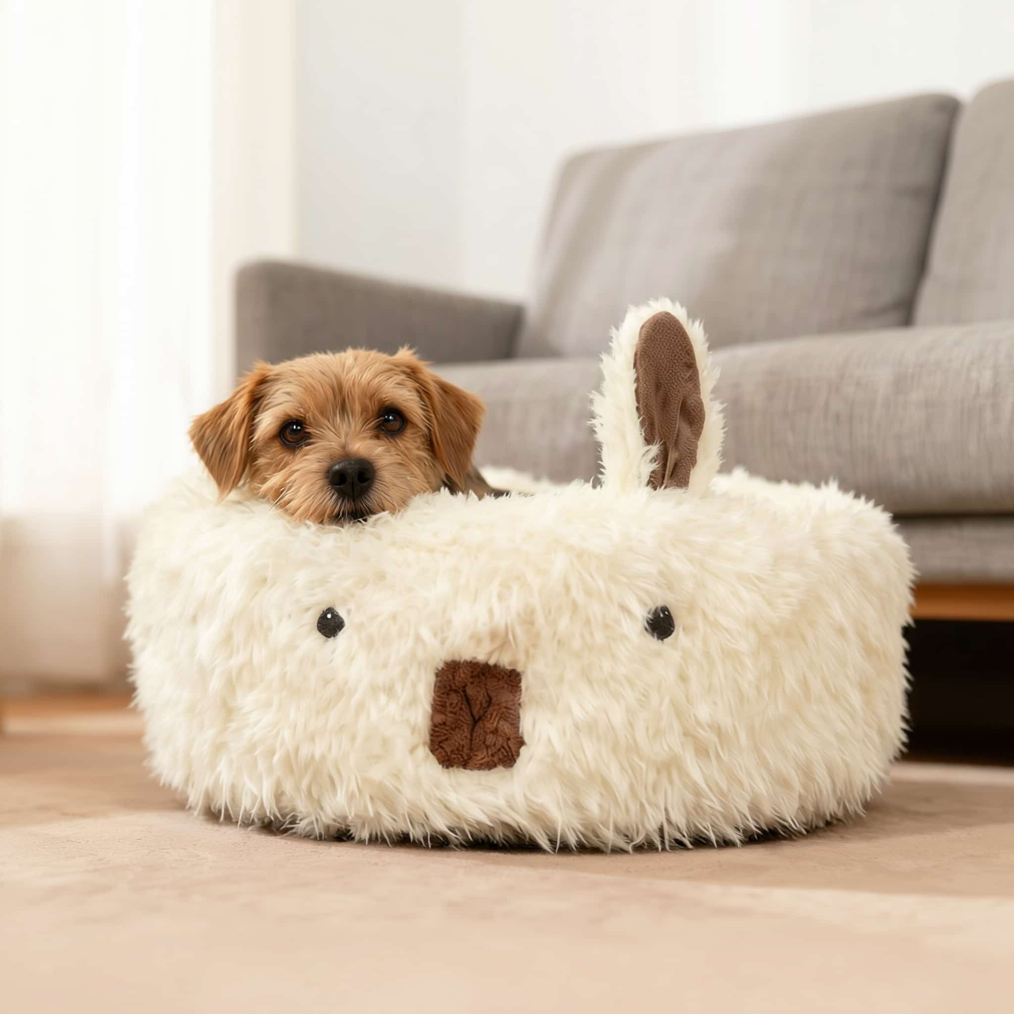Winter warm alpaca bed with half-enclosed design that reduces anxiety by creating den-like environment.