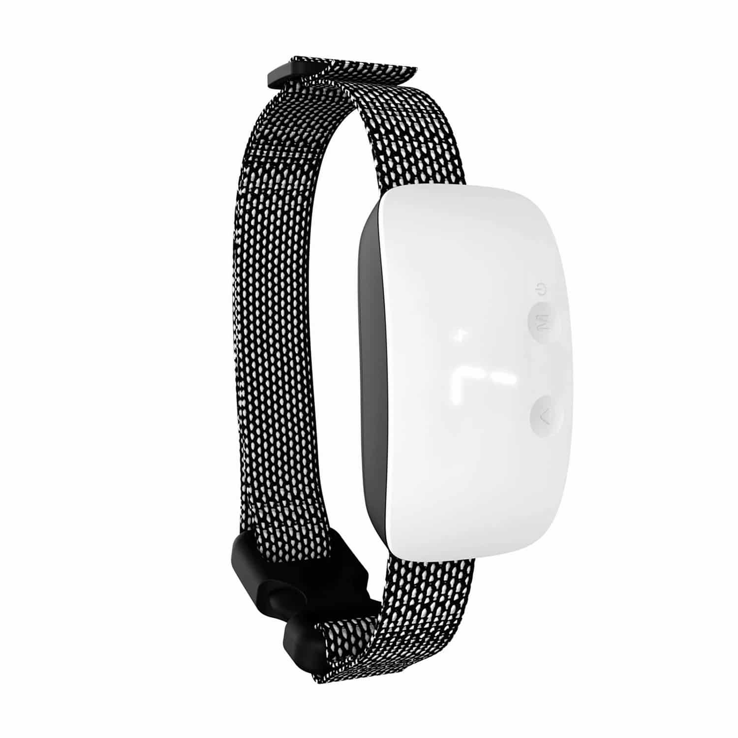 Anti bark collar with a smart recognition chip that detects your dog’s specific bark frequency and filters out other dogs, traffic, and household noise. Three training modes with adjustable sensitivity levels match correction to your dog’s size, breed, and temperament. IP67 waterproof for rain, puddles, and water bowl exposure. Compact unit measures 2.75 x 1.6 x 1.5 inches and weighs 2.4 oz. USB rechargeable 300mAh battery. Touch button controls. Includes adjustable nylon strap, USB cable, test bulb, and manual. Available in white or black.