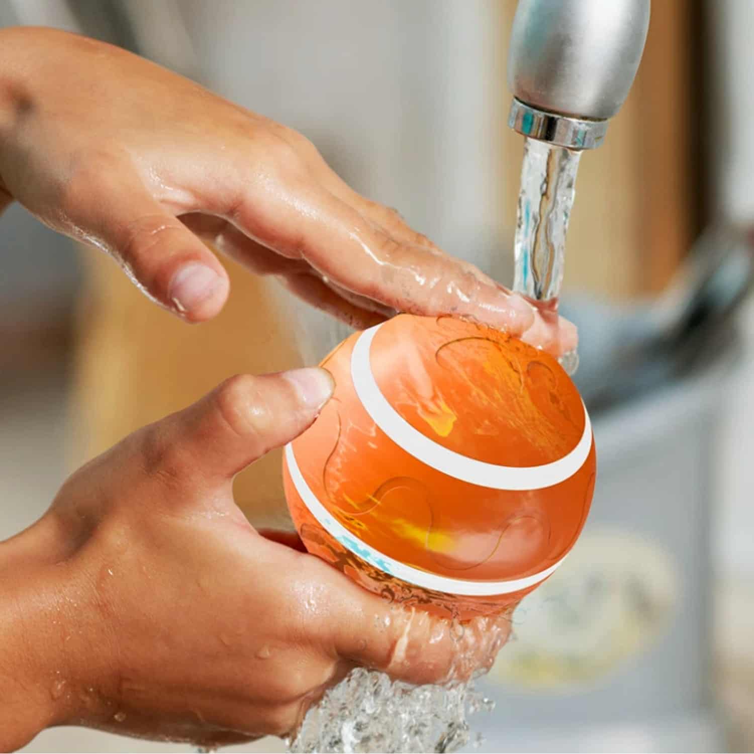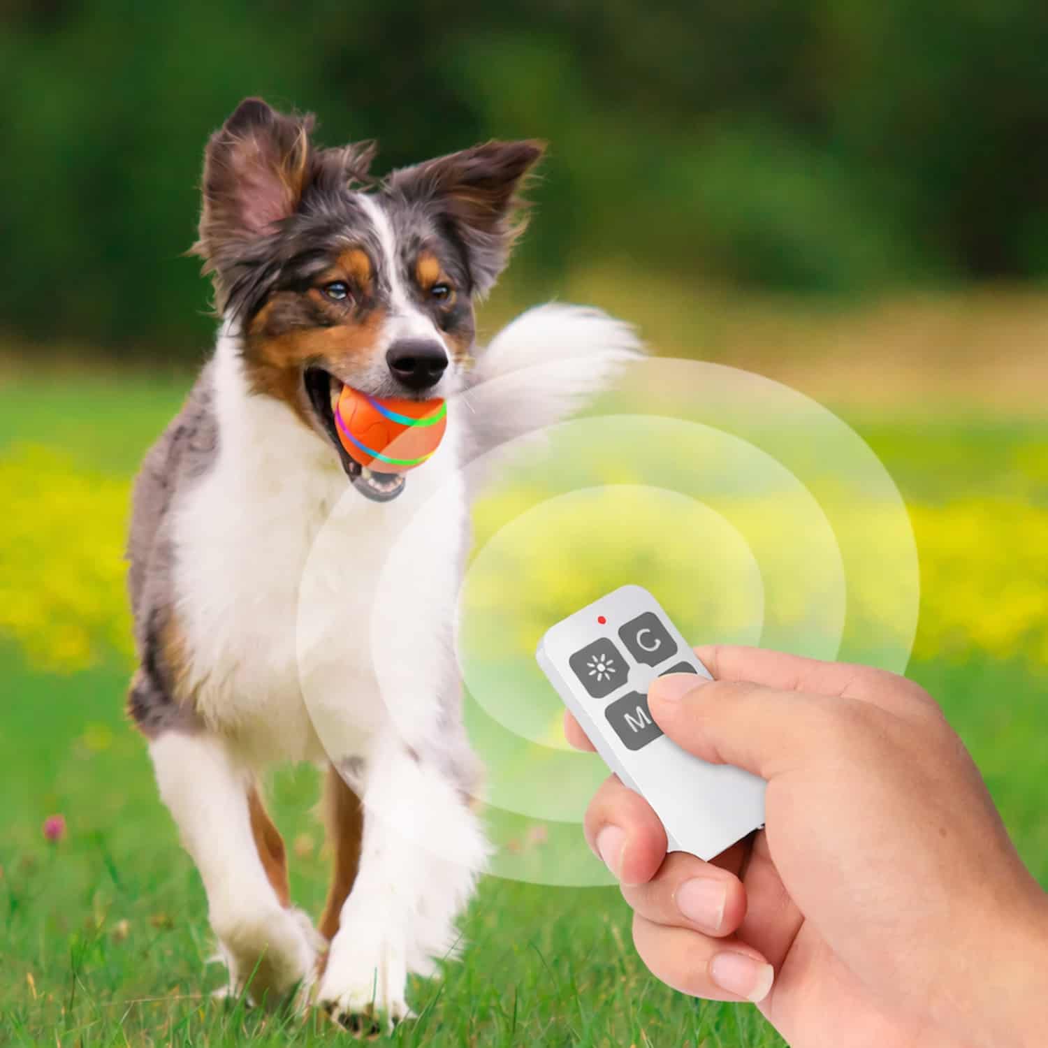 Self-rotating interactive cat ball with automatic direction change when contacting obstacles. RGB LED strips activate during movement. 500mAh USB rechargeable battery runs 4 hours per charge, 7-day standby. Two speed modes, crazy and normal. IP54 water-resistant silicone and ABS construction. 80mm diameter. Available in orange, yellow, or pink. Optional remote control version.