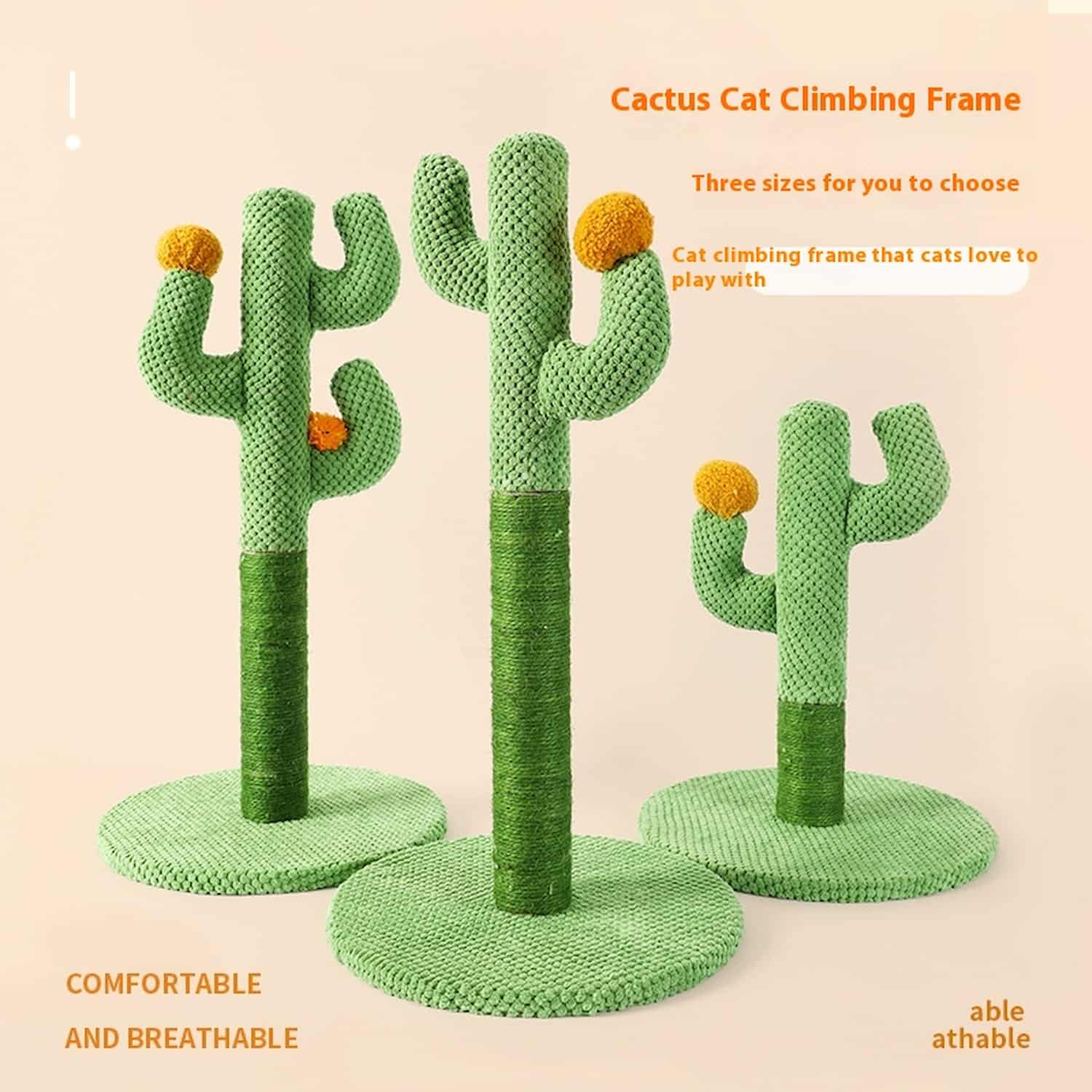 Cactus Cat Scratching Post, Full Sisal Wrap, Non-Slip Base, 3 Sizes, Indoor Cats