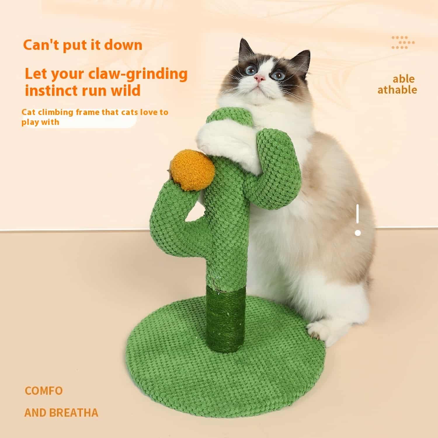 Sisal wraps the full trunk and both cactus arms, giving cats multiple scratch angles at different heights. Cats that prefer standing, stretching, or side-swiping all find a surface that fits their style on the same post without needing separate scratchers.