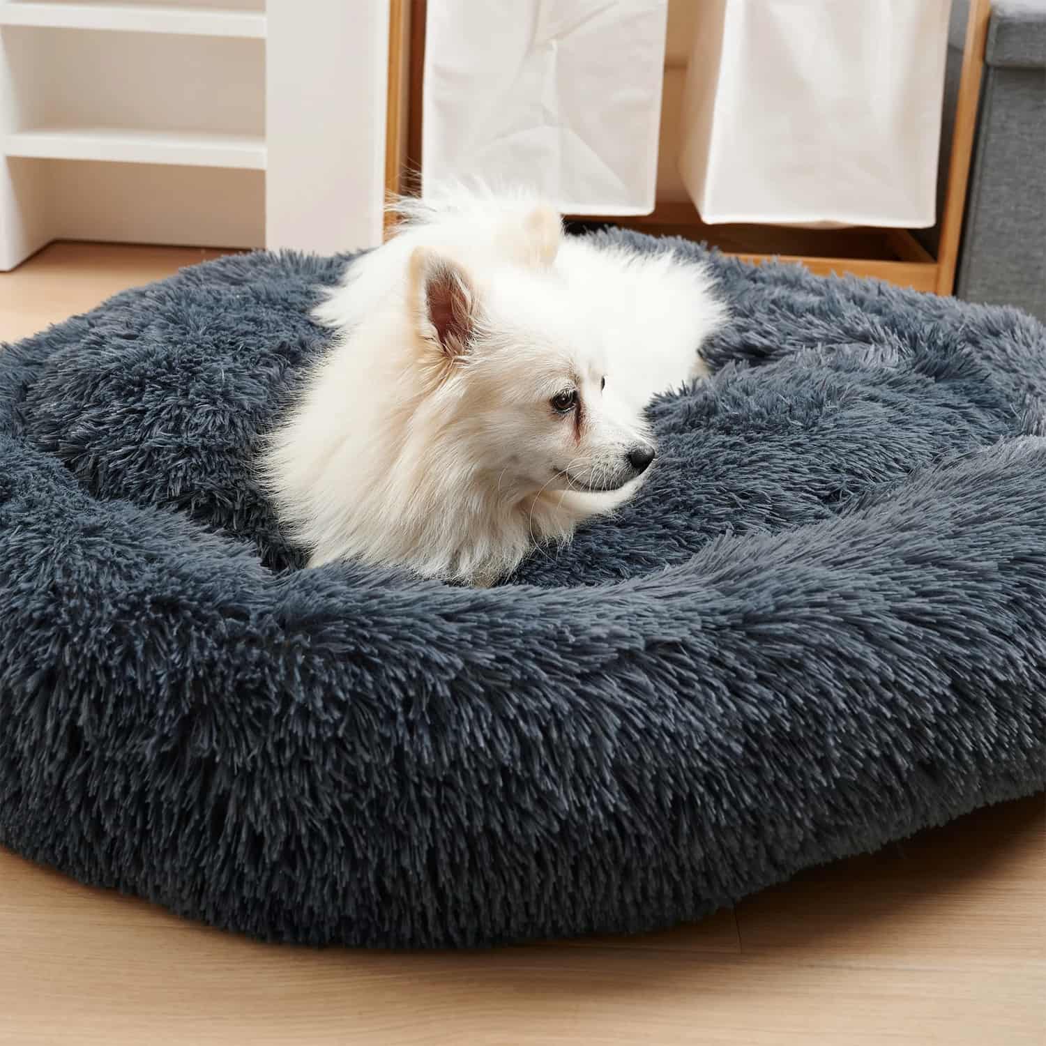 The donut wall rises around the full perimeter, giving curled pets a surface to rest their head and neck against throughout sleep. Pets that wake restless on flat beds typically stay settled on raised-rim designs because the head stays supported without effort.