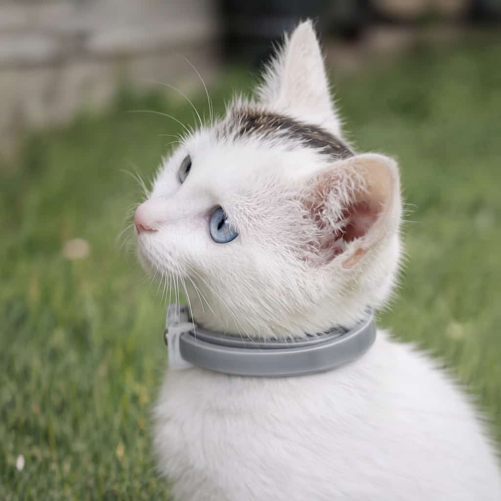 Cat collar with natural essential oil formula that kills fleas, ticks, larvae, and lice without synthetic pesticides.