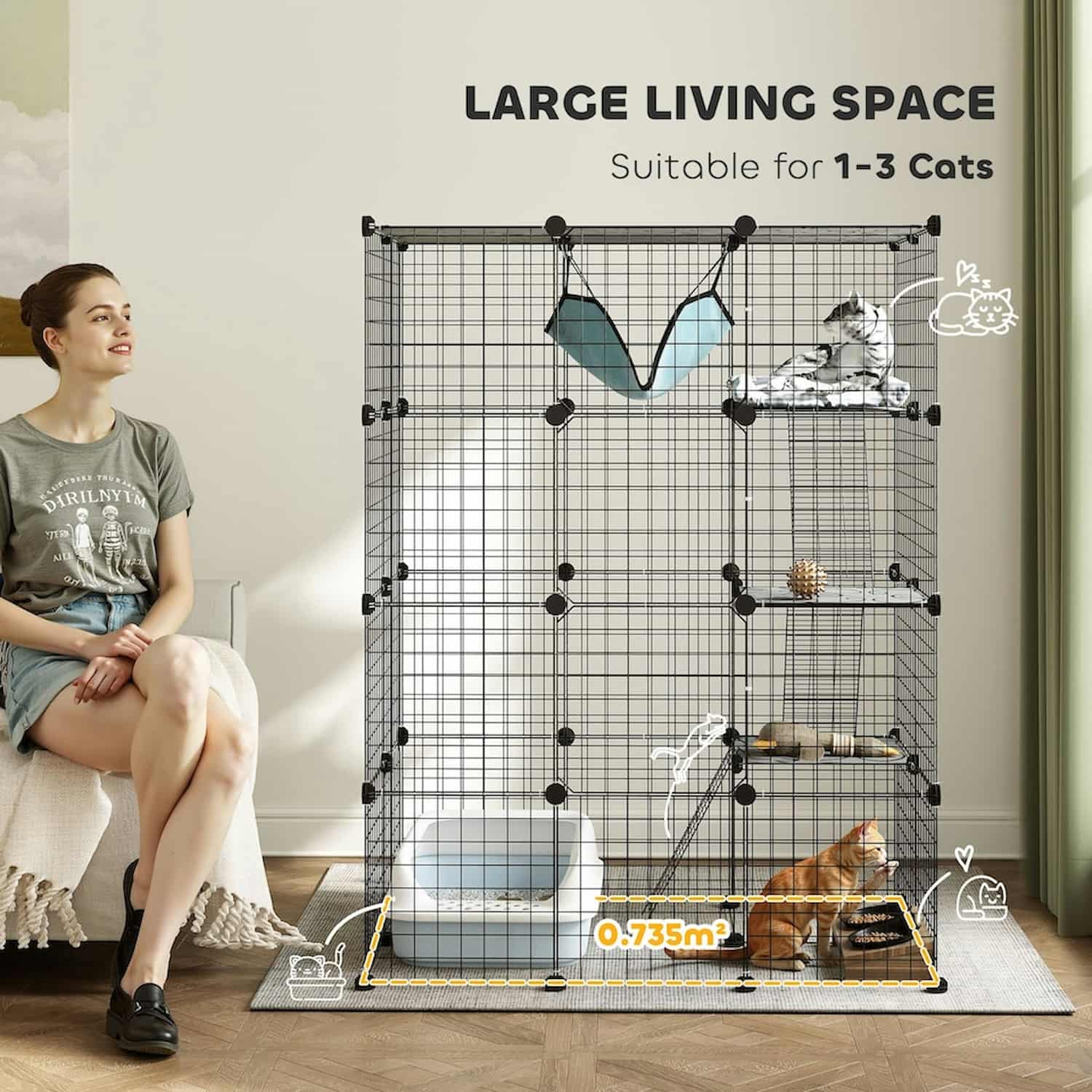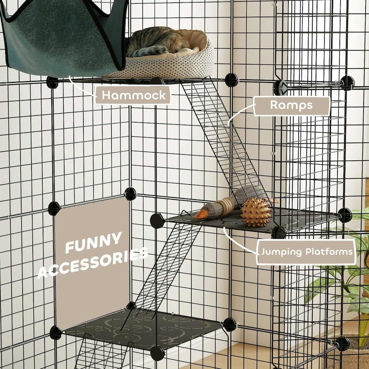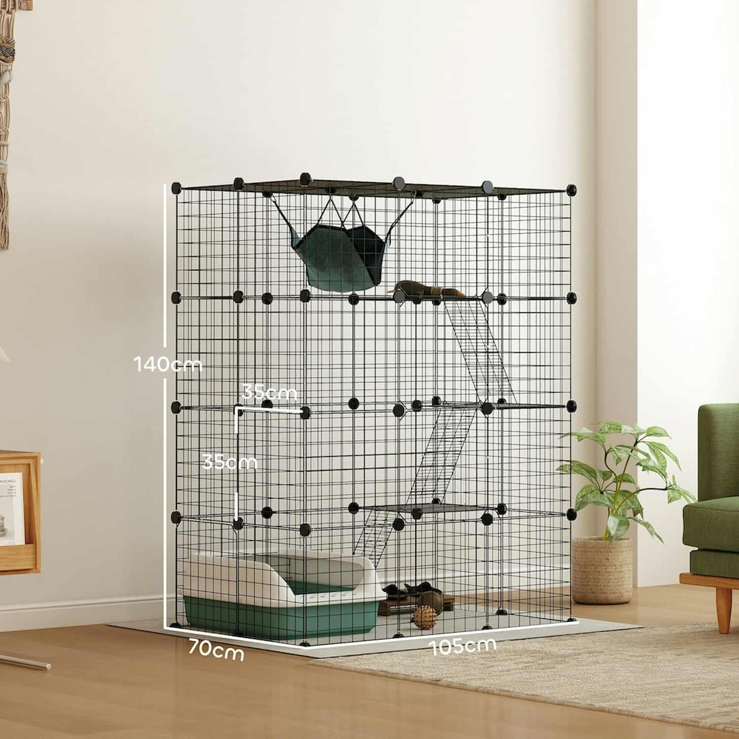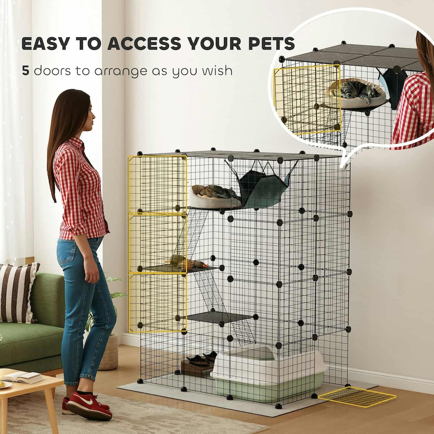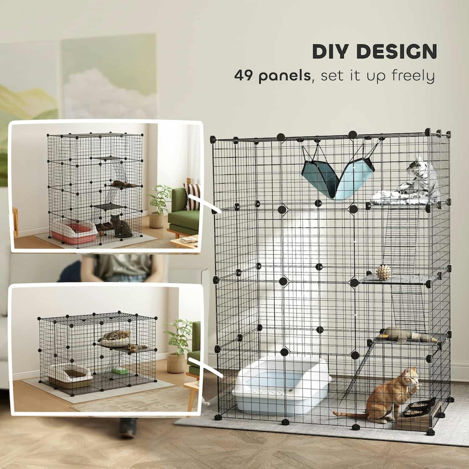 DIY 4-Tier Cat Cage: 49 Panels Build Custom Layouts, Holds 3 Cats, Ramps & Hammock