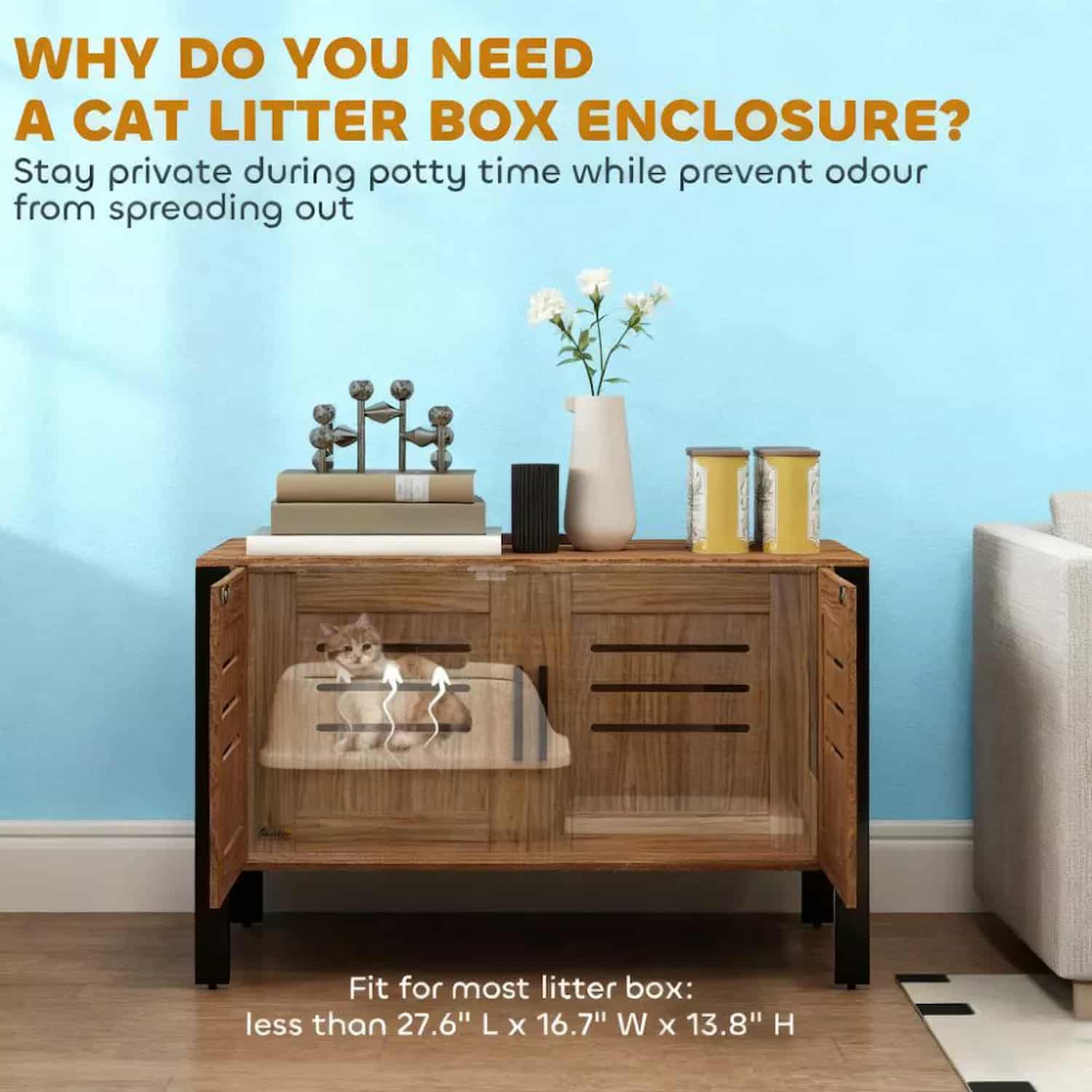 Elevated Litter Box Cabinet: 4.7" Tall Legs Make Cleaning Easy, Vents Reduce Odor