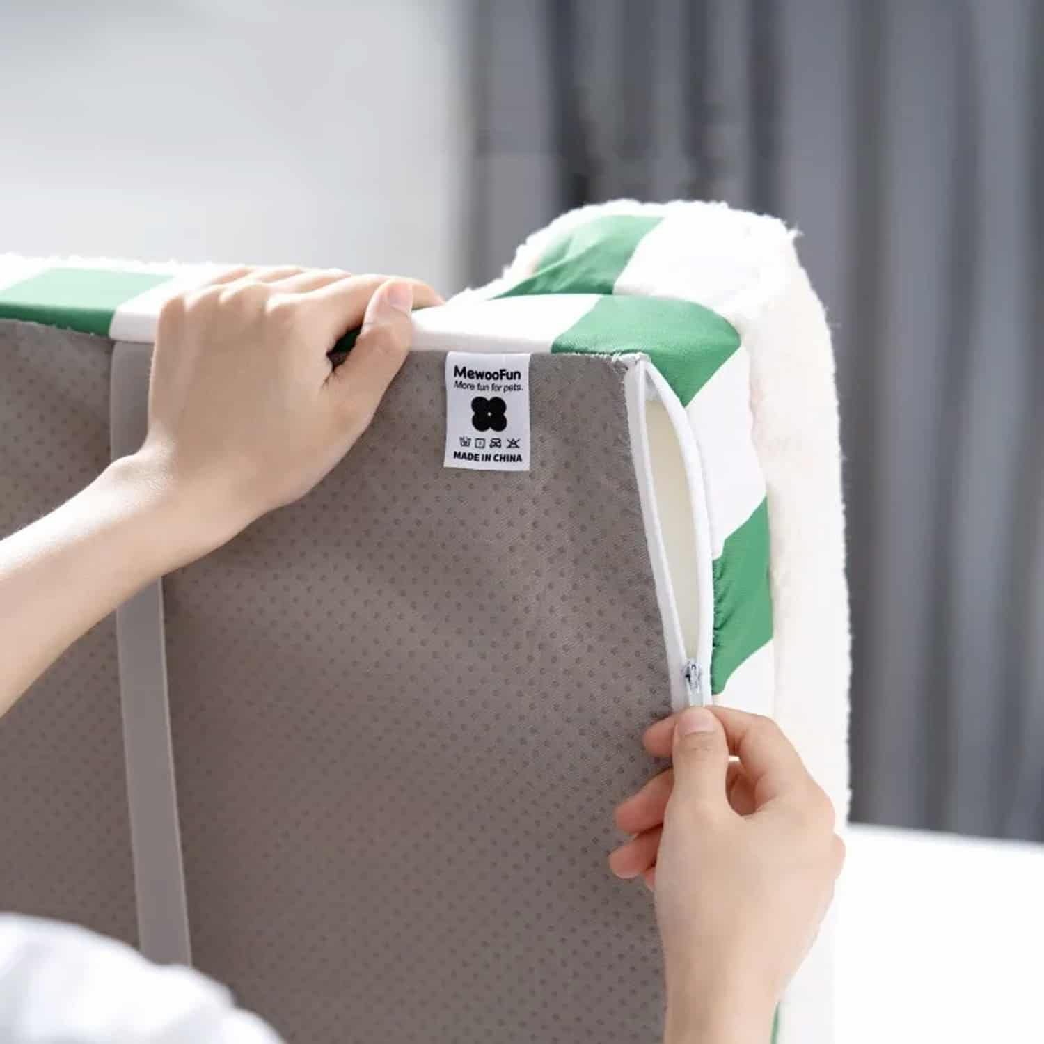 A durable zipper separates the mattress from the frame in seconds, allowing it to function as a standalone orthopedic pad on sofas, beds, or blankets wherever the pet rests outside the frame. The same zipper opens the cover for machine washing without disassembling the full bed or removing the foam insert separately from the shell.