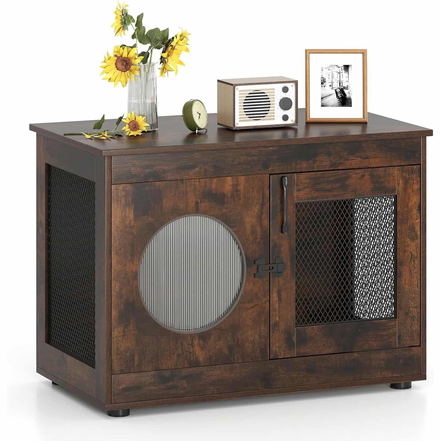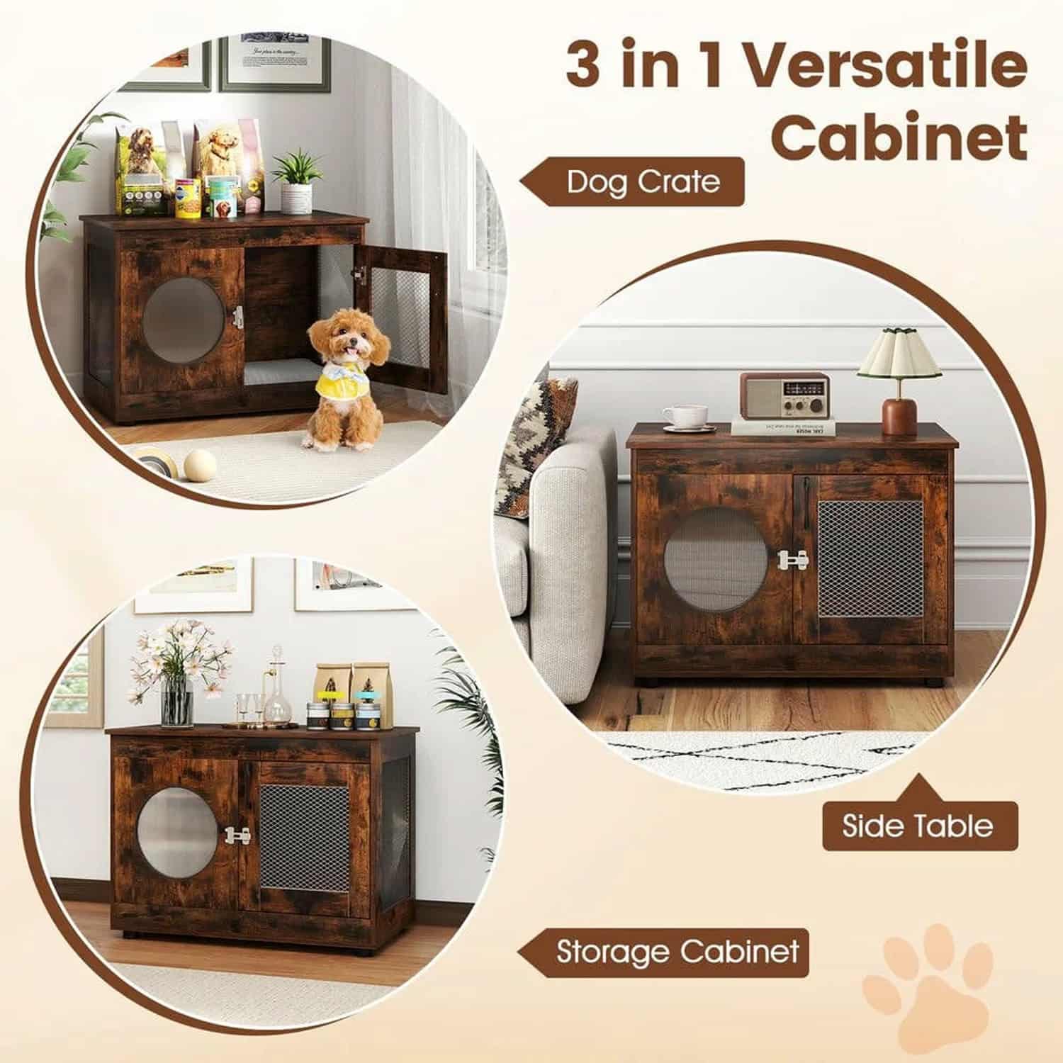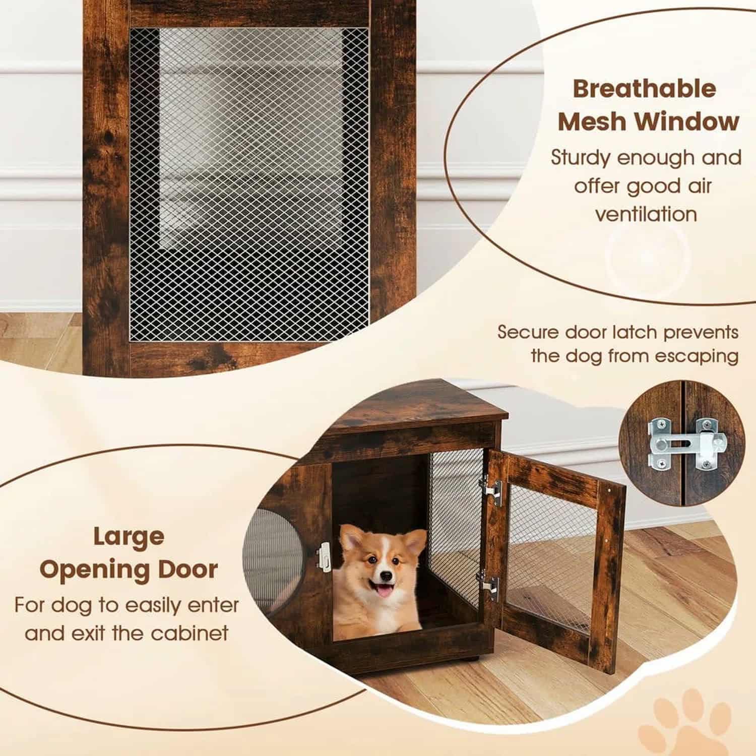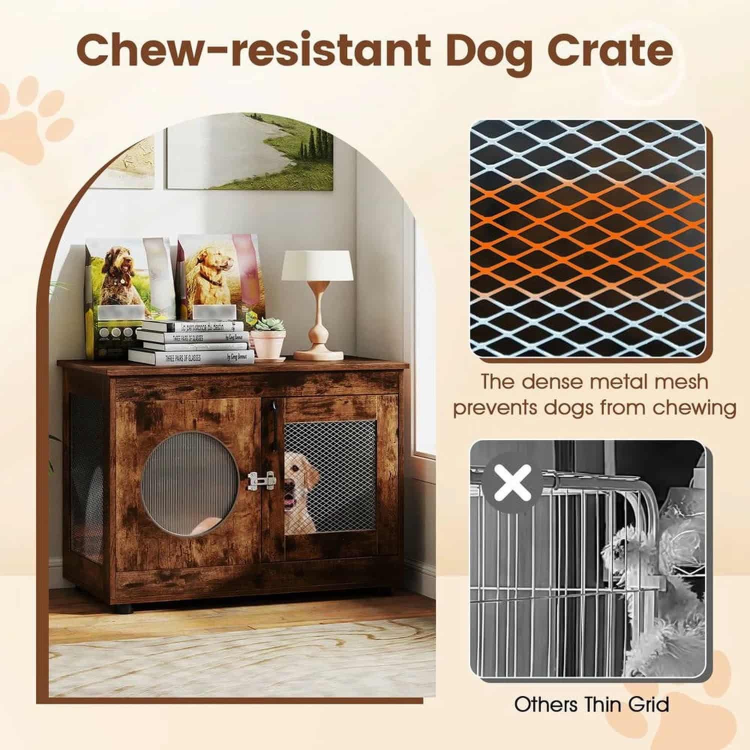 Dog Crate Furniture: Doubles as Side Table, Chew-Proof Mesh, PC Window for Monitoring