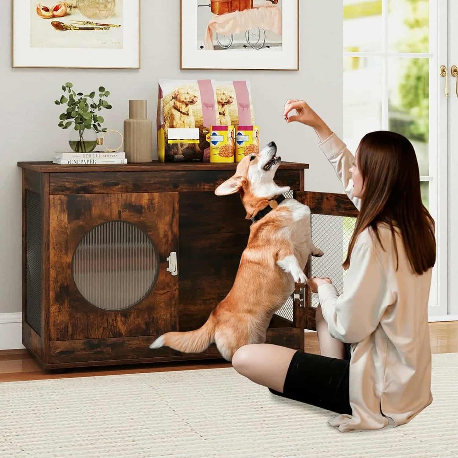 The only indoor dog crate disguised as furniture, with a functional tabletop and transparent window that lets you check on your dog without opening the door.