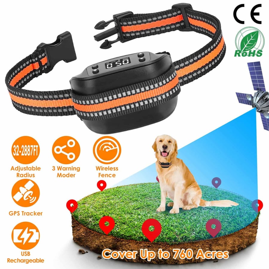 GPS Wireless Dog Fence: 2887ft Range, iPhone Tracker, 3-Day Battery, IPX6.