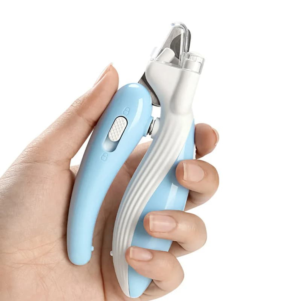 Nail clippers with integrated LED light that reveals the bloodline inside nails before cutting, preventing painful bleeding and trauma that makes future grooming difficult.