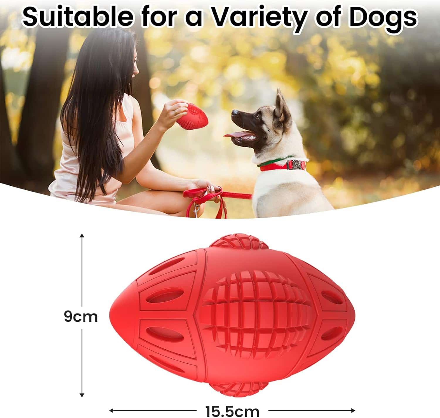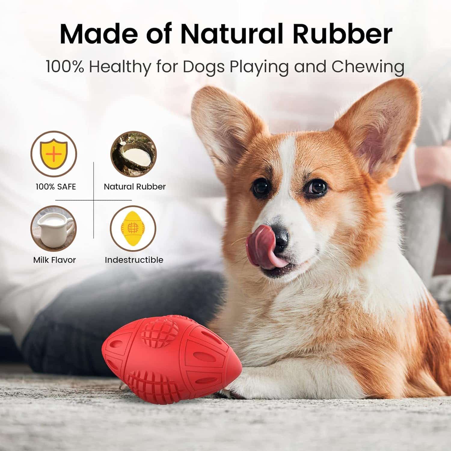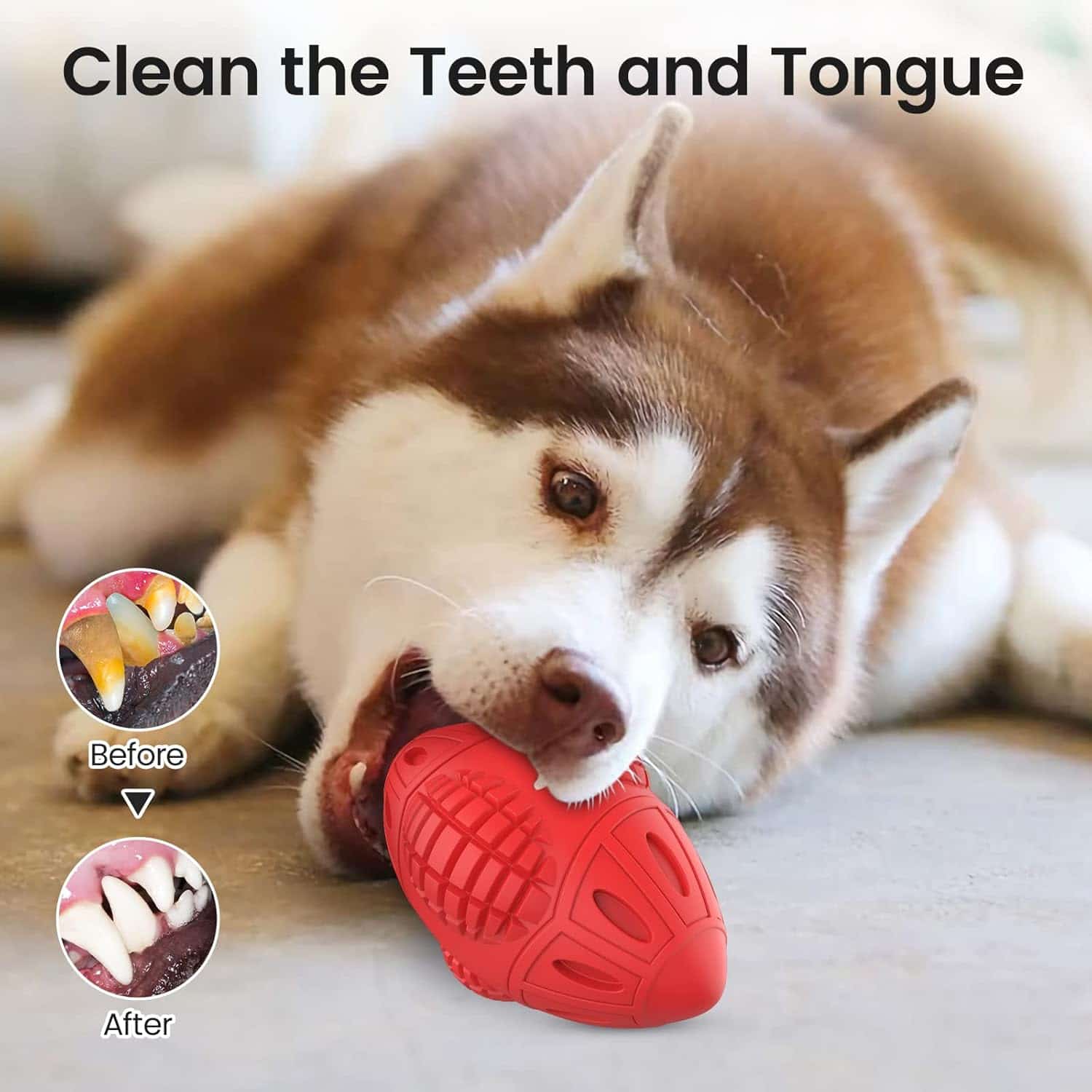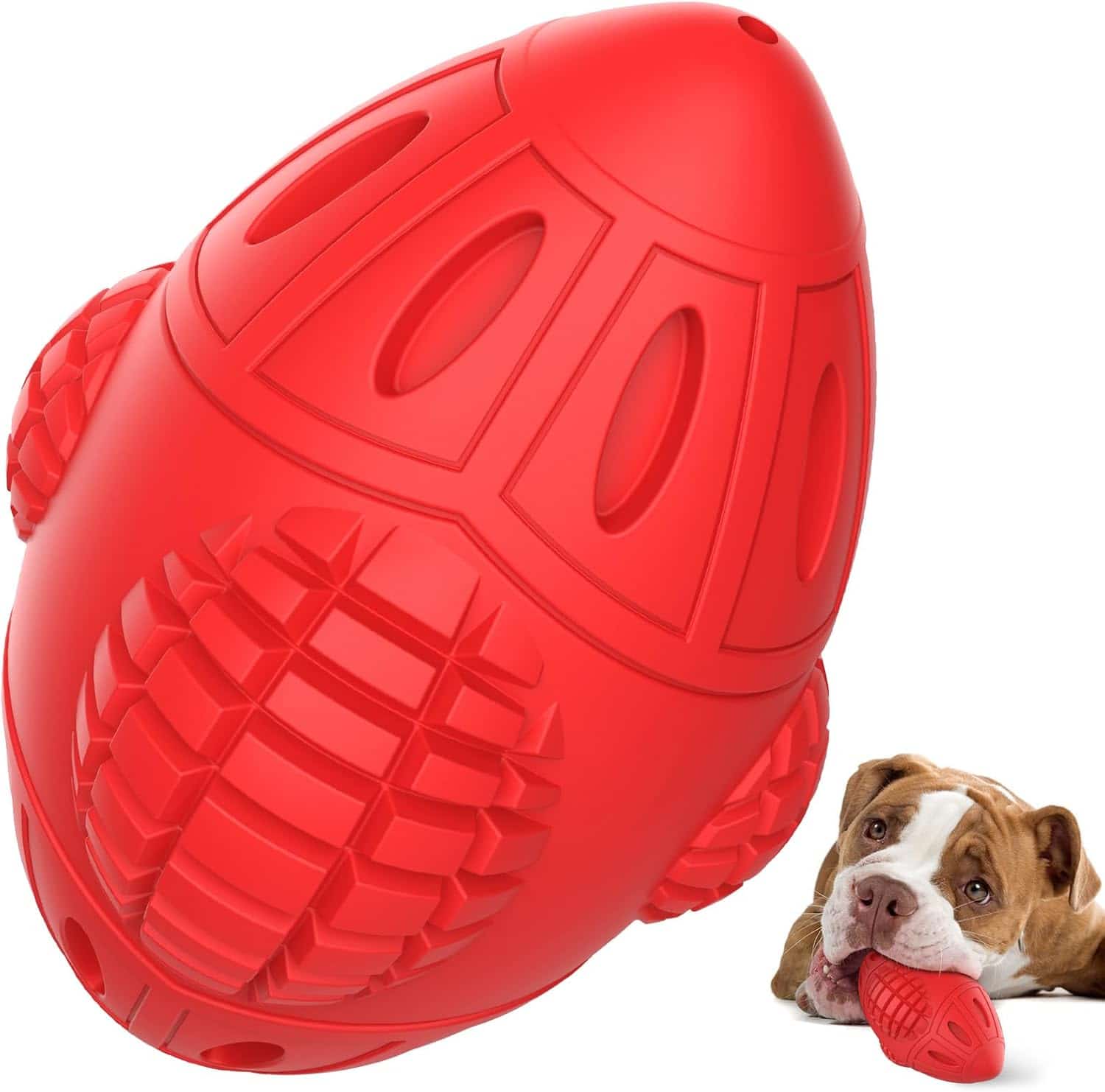 A 6.1-inch natural rubber chew toy with beef flavoring that survives 6+ months of daily power chewing, eliminating weekly $15-20 toy replacements. Textured ridges mechanically remove plaque and tartar, delaying $300-800 veterinary dental cleanings. Beef scent and internal squeaker redirect furniture chewing, protecting $500-2,000 couches and doorframes. Non-toxic rubber safe if swallowed, unlike rawhide causing $2,000-5,000 surgery. 2.75-inch width prevents choking in 40-100 lb dogs. Floats for water fetch, rinse clean, tested by aggressive large breeds. Not for dogs under 25 lbs.