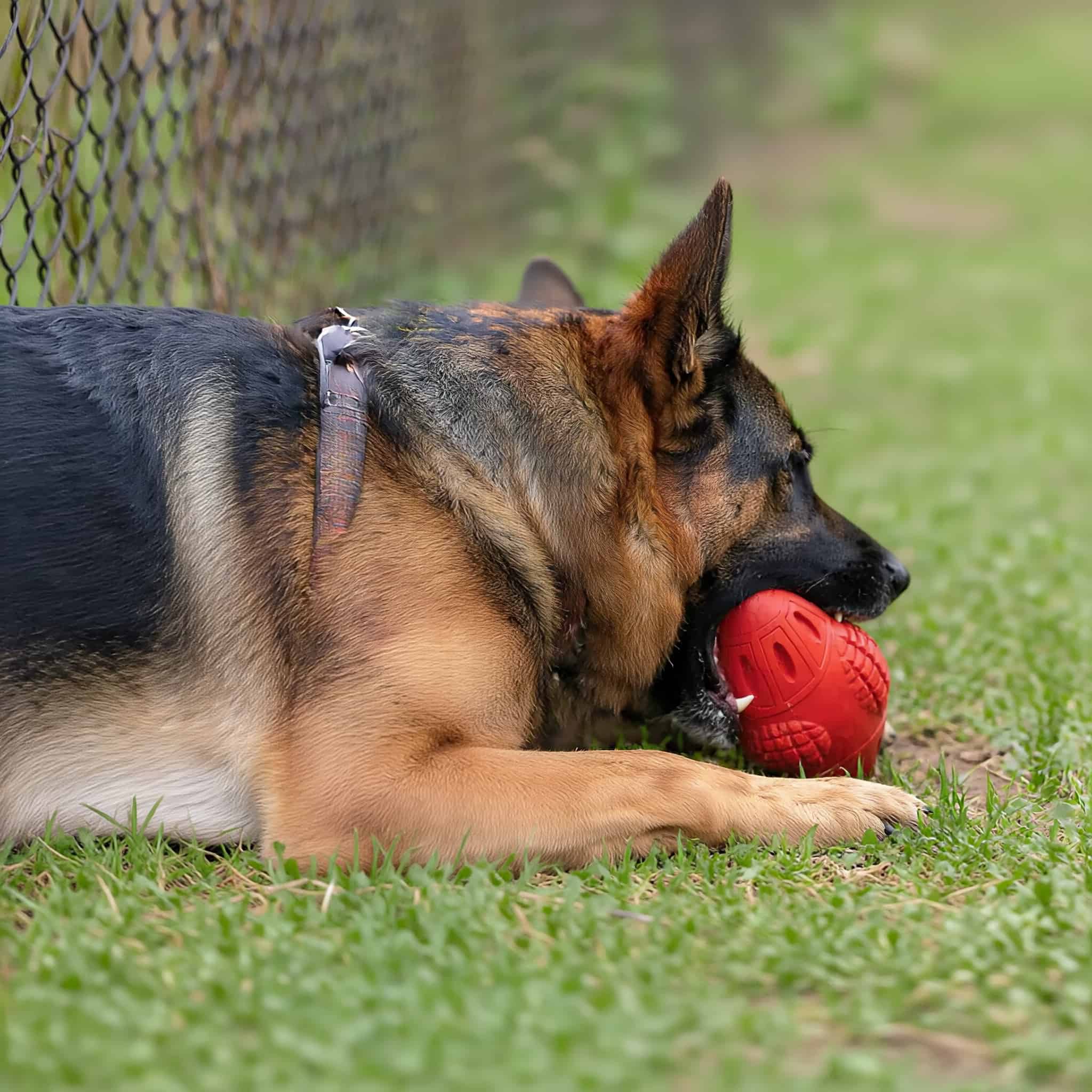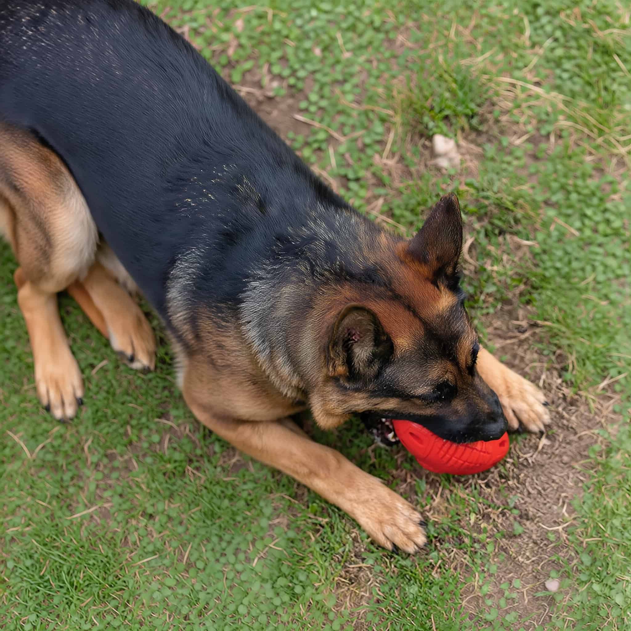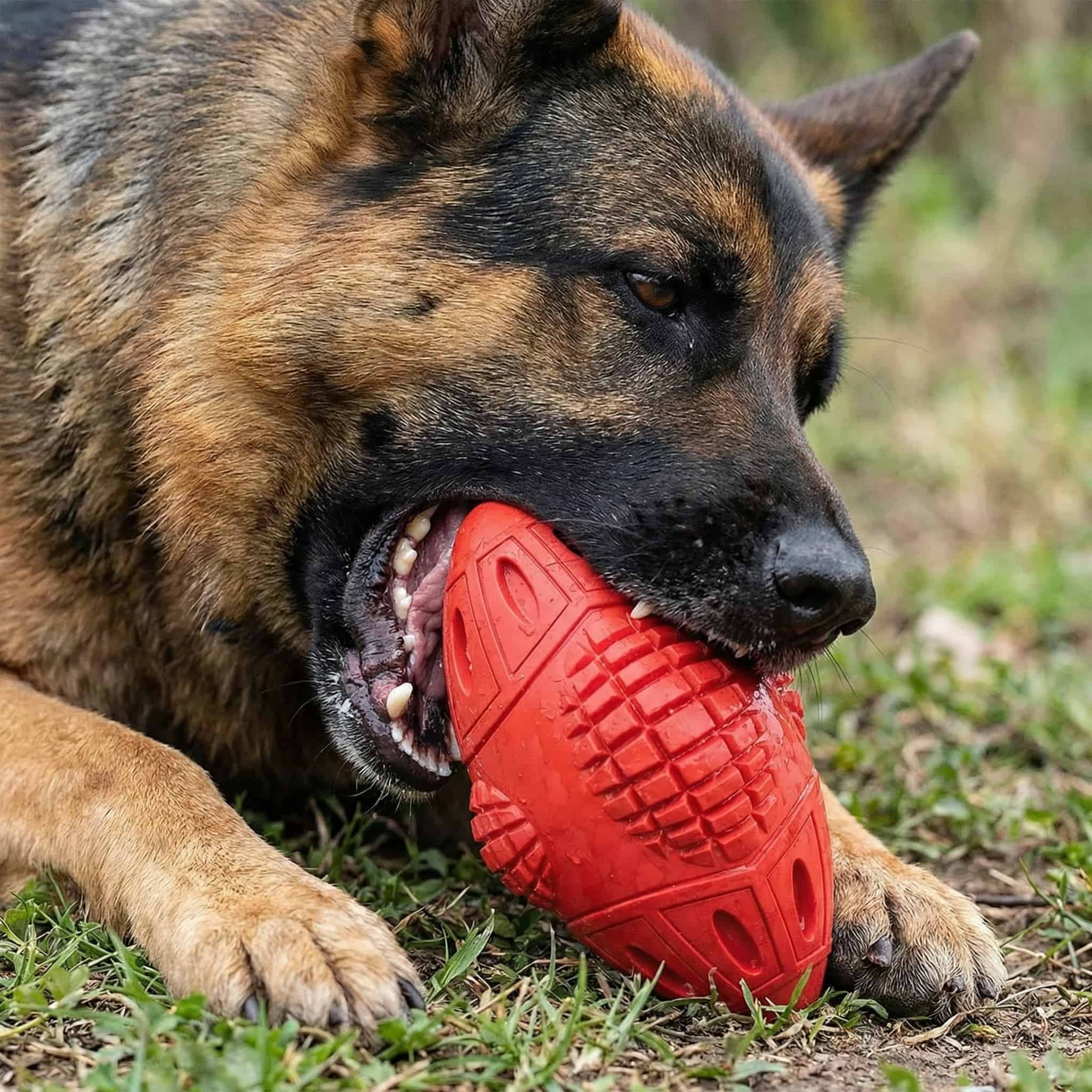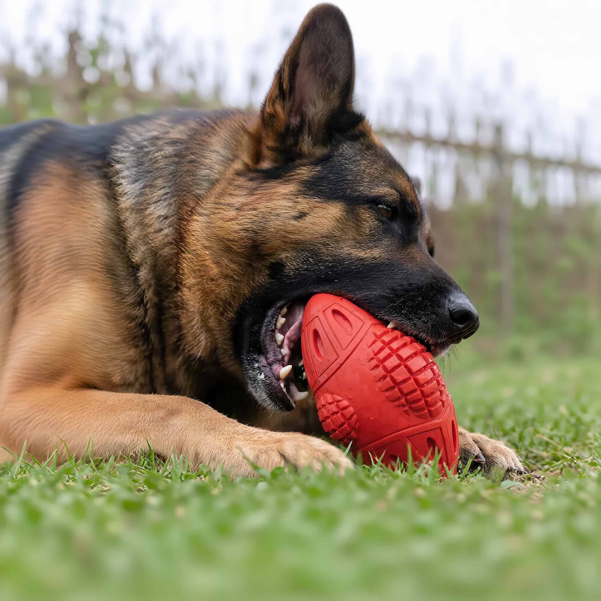 Natural rubber chew toy lasting 6+ months with power breeds like Pit Bulls and German Shepherds