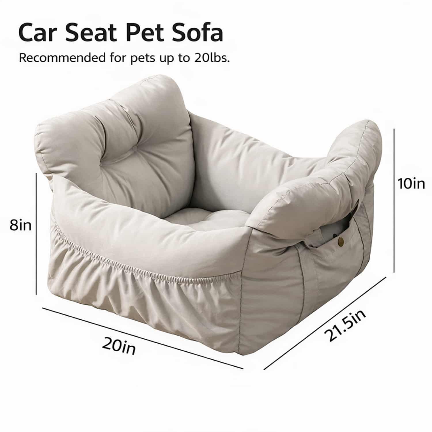 Pet Car Seat Bolster Bed, Waterproof, Safety Buckle, Non-Slip, 8x20x22 Inch