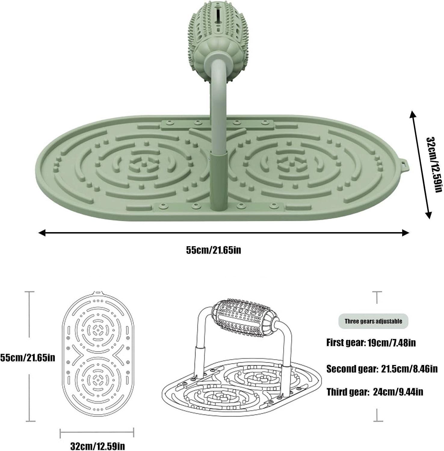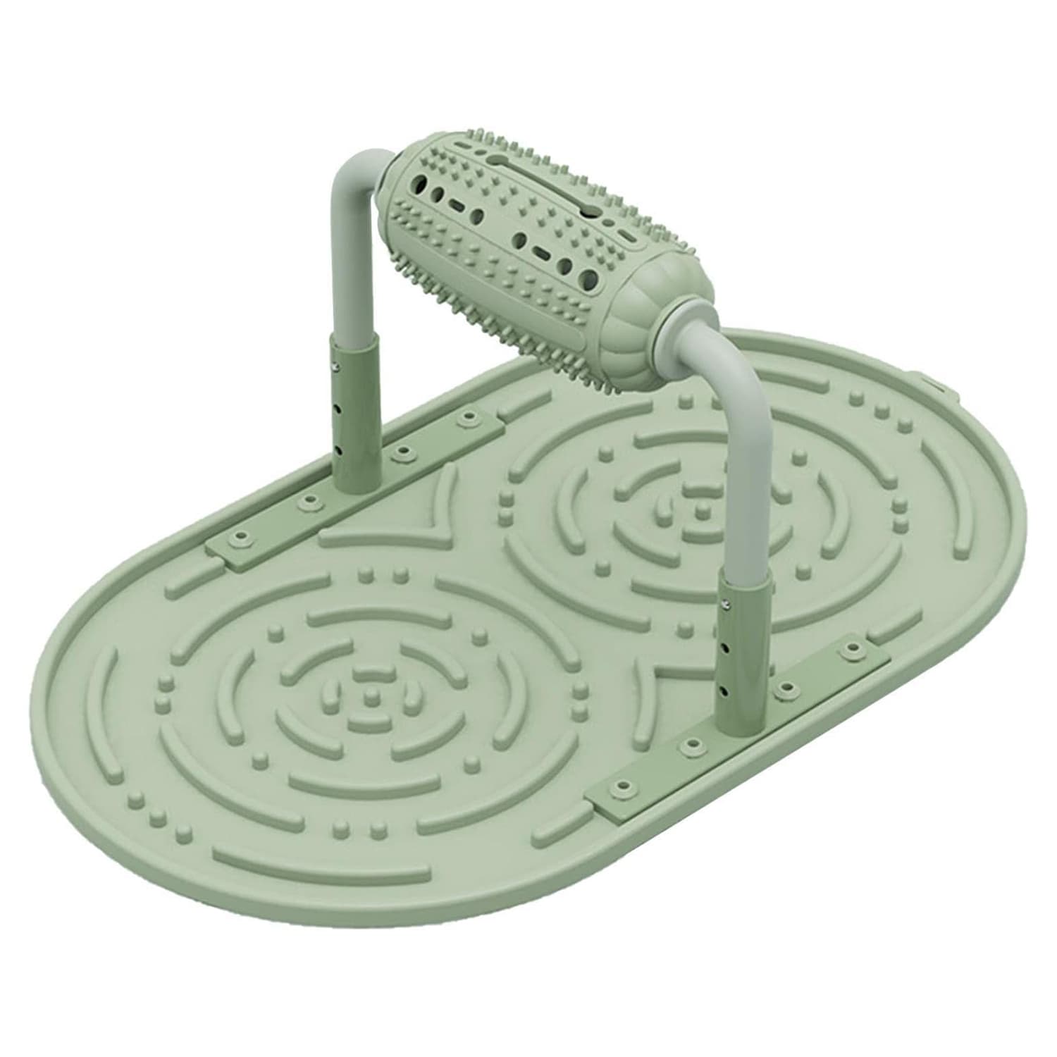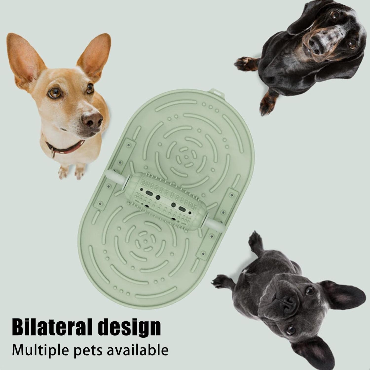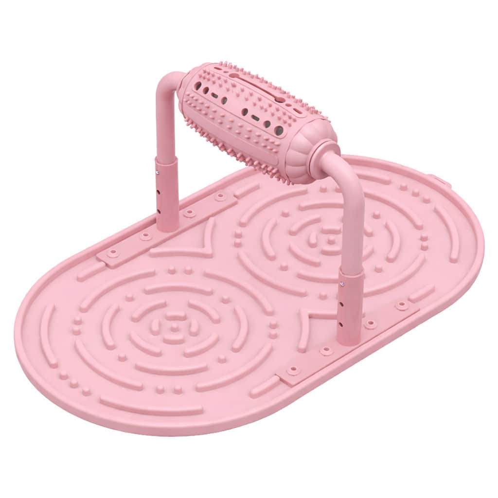 2-in-1 interactive puzzle feeder with spinning treat roller that dispenses kibble through openings onto maze-style lick pad below. Two-stage challenge extends mealtime to 15-20 minutes, preventing boredom during work hours. Maze grooves force dogs to lick slowly rather than gulp, reducing risk of bloating, vomiting, or gastric torsion. Works with wet food, peanut butter, yogurt, or kibble. Durable ABS base resists breakage, soft silicone lick pad gentle on teeth. Dishwasher-safe, environmentally friendly materials. Adjustable roller height accommodates small to medium breeds. Bilateral design allows multiple pets to use simultaneously. Stable base prevents tipping.