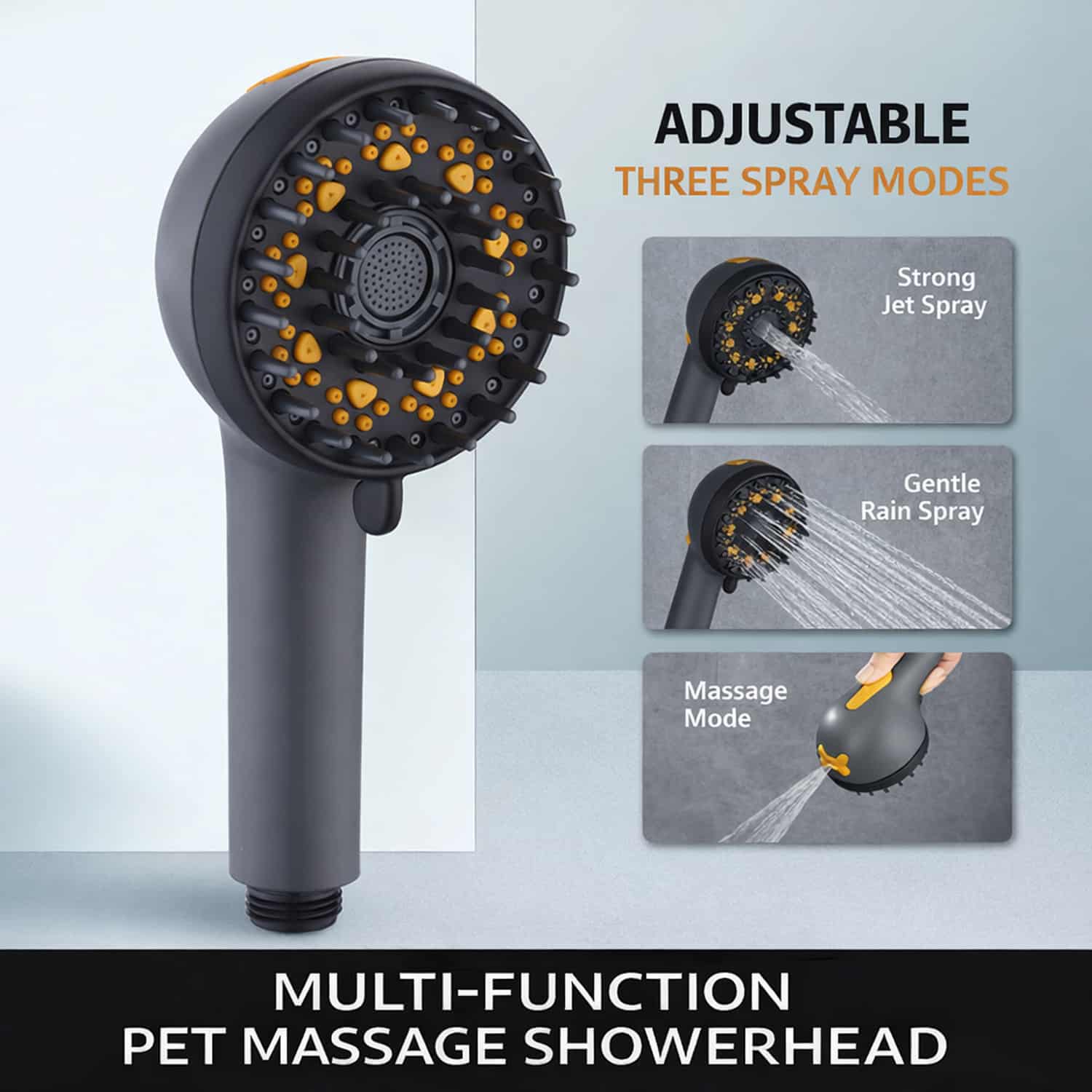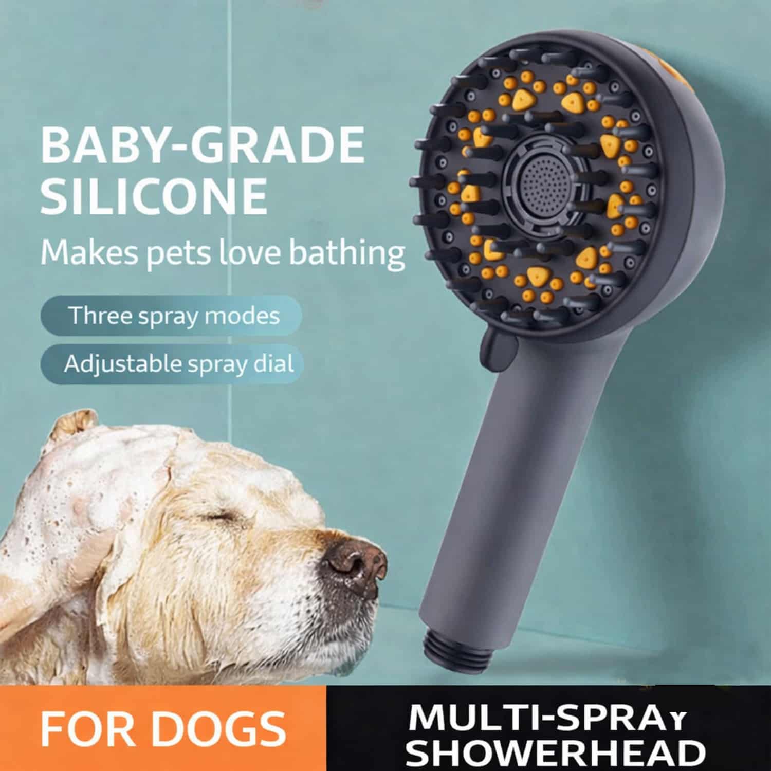 A 3-in-1 pet shower head with massage bristles and three switchable spray modes that cleans cats and dogs faster than a standard nozzle.