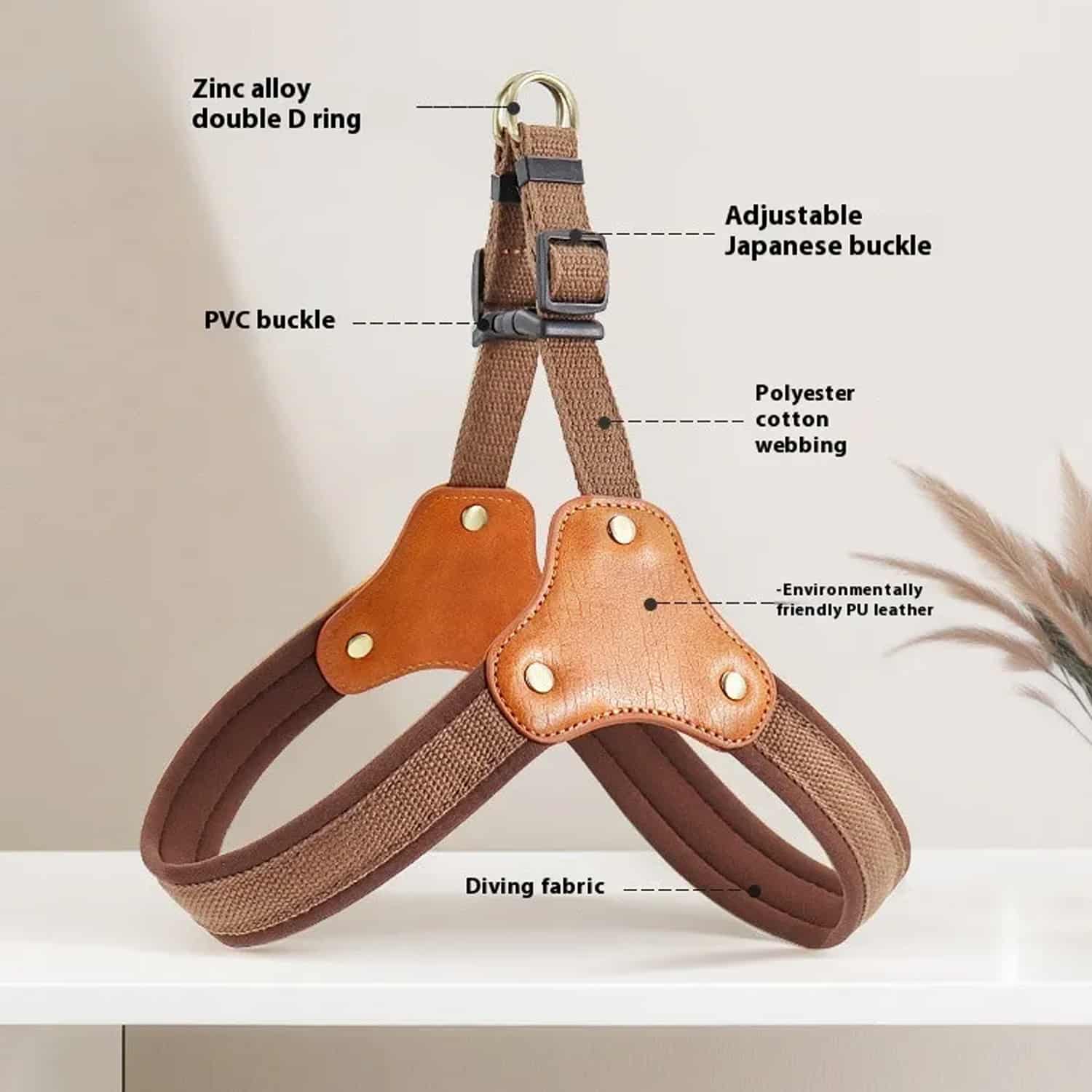 No-Choke Chest Harness: Neoprene Lining Won't Snag Fur, PU Leather Lasts Years