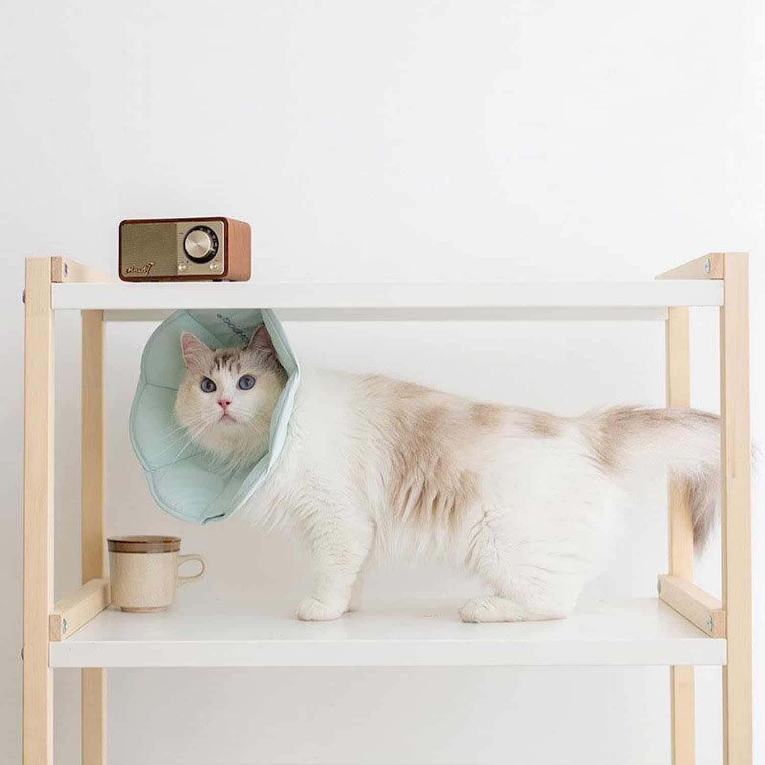 Polyester fiber construction bends when the cat moves rather than holding rigid, like a fabric funnel versus a plastic bucket. The wide border distributes contact evenly around the neck so no single pressure point builds up during recovery.