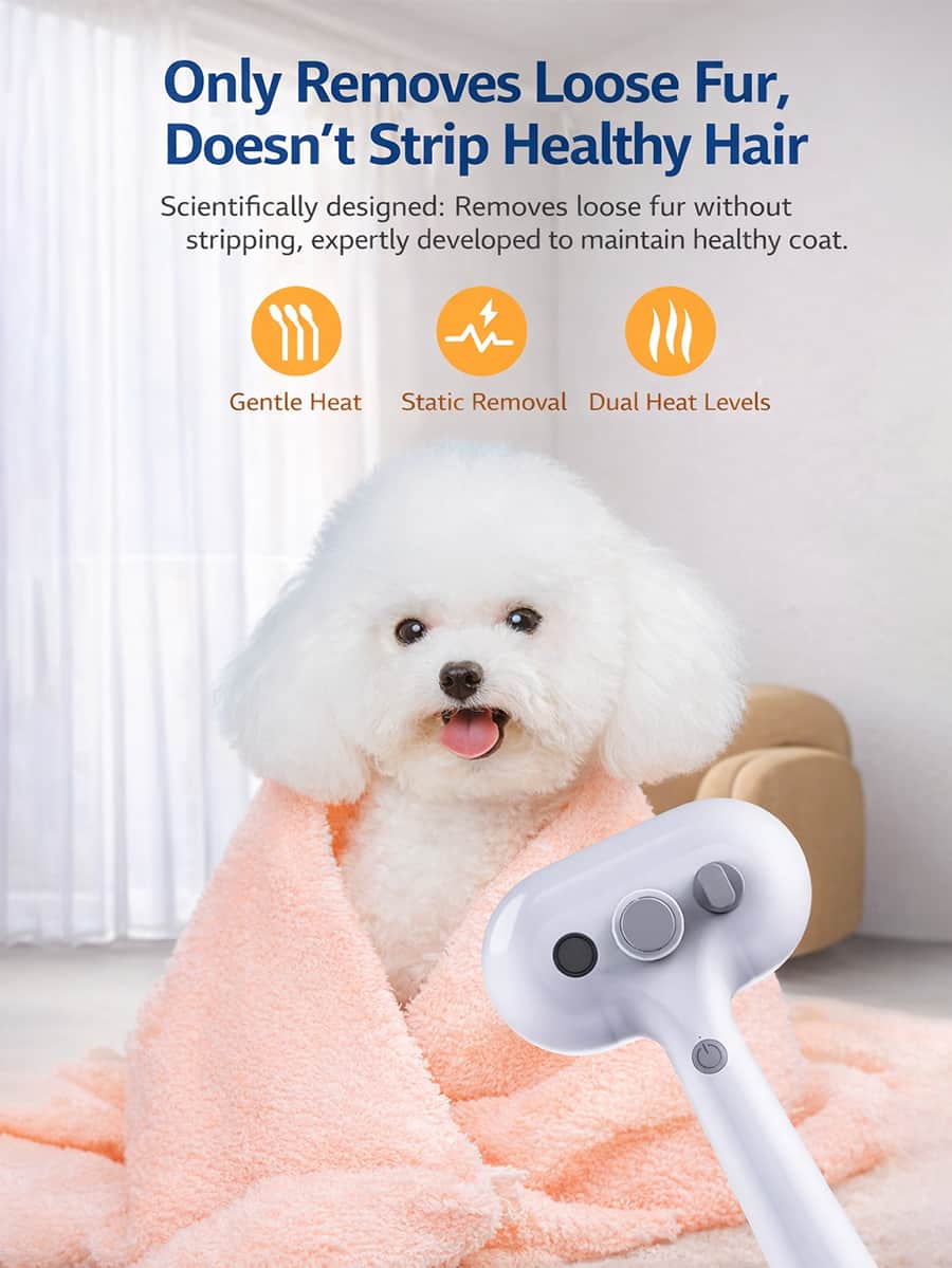 Floating fur collector with one-button releases collected fur cleanly without manual picking, won’t hurt skin, hair won’t fly everywhere. Eliminates manually pulling fur from bristles. 300mAh battery with fast USB charging for cordless grooming. Durable ABS and stainless steel. Ergonomic grip. Universal for cats and dogs all sizes.