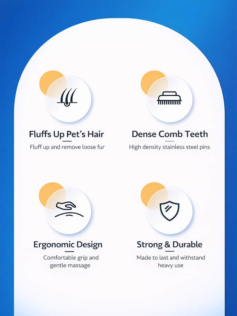 Gentle 140-degree curved steel bristles better grab hair while fluffing undercoat to stay on surface. Ergonomic curvature glides through fur removing impurities without pulling. Durable stainless steel resists deformation and rust, spacing prevents scratching sensitive skin.