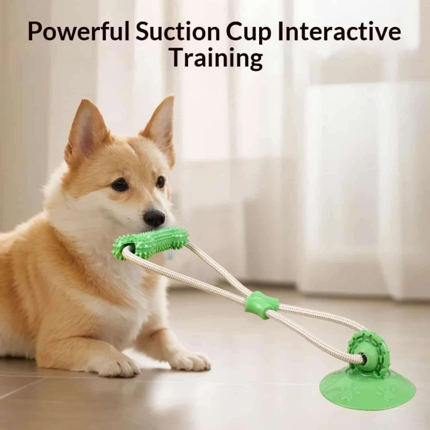 Suction Cup Dog Toy: Floor-Mount Tug Rope with Textured Dental Chew