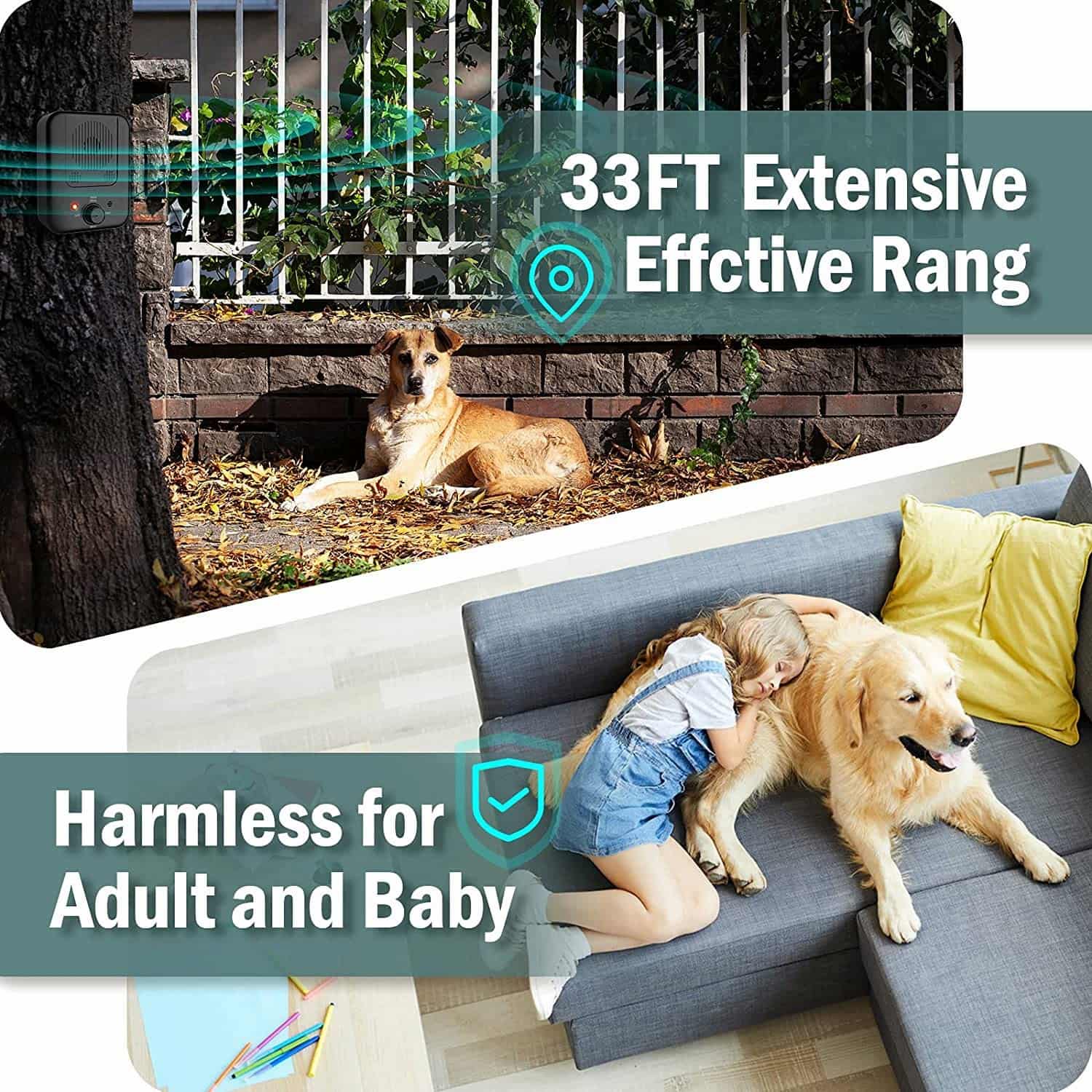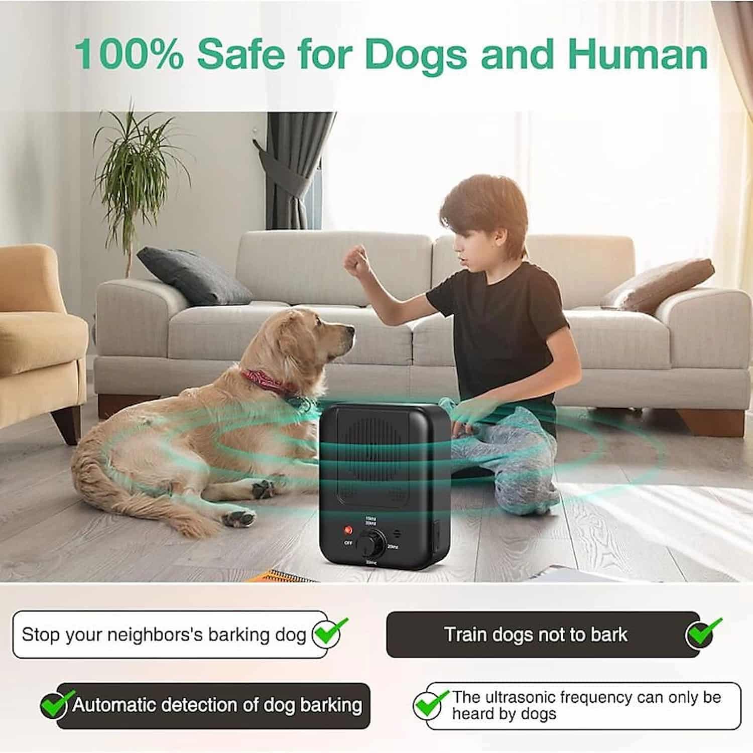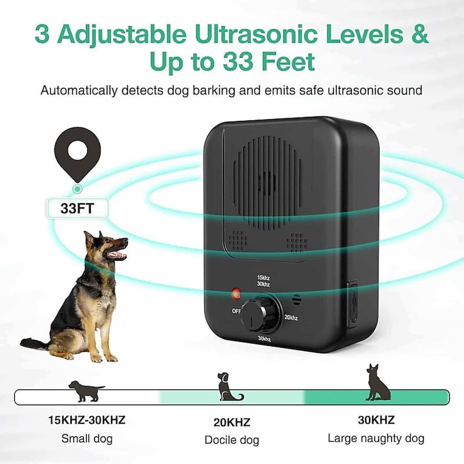 🔇 Stops barking from up to 33 ft away