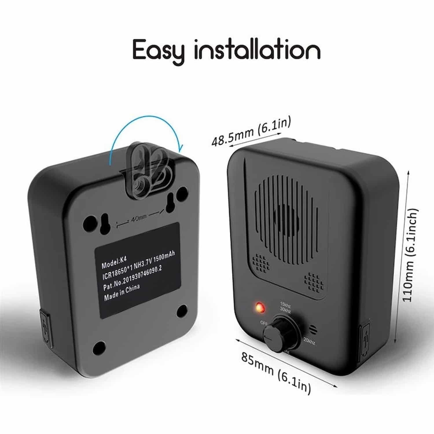 Ultrasonic bark control device with 4 frequency modes and 33 ft range.