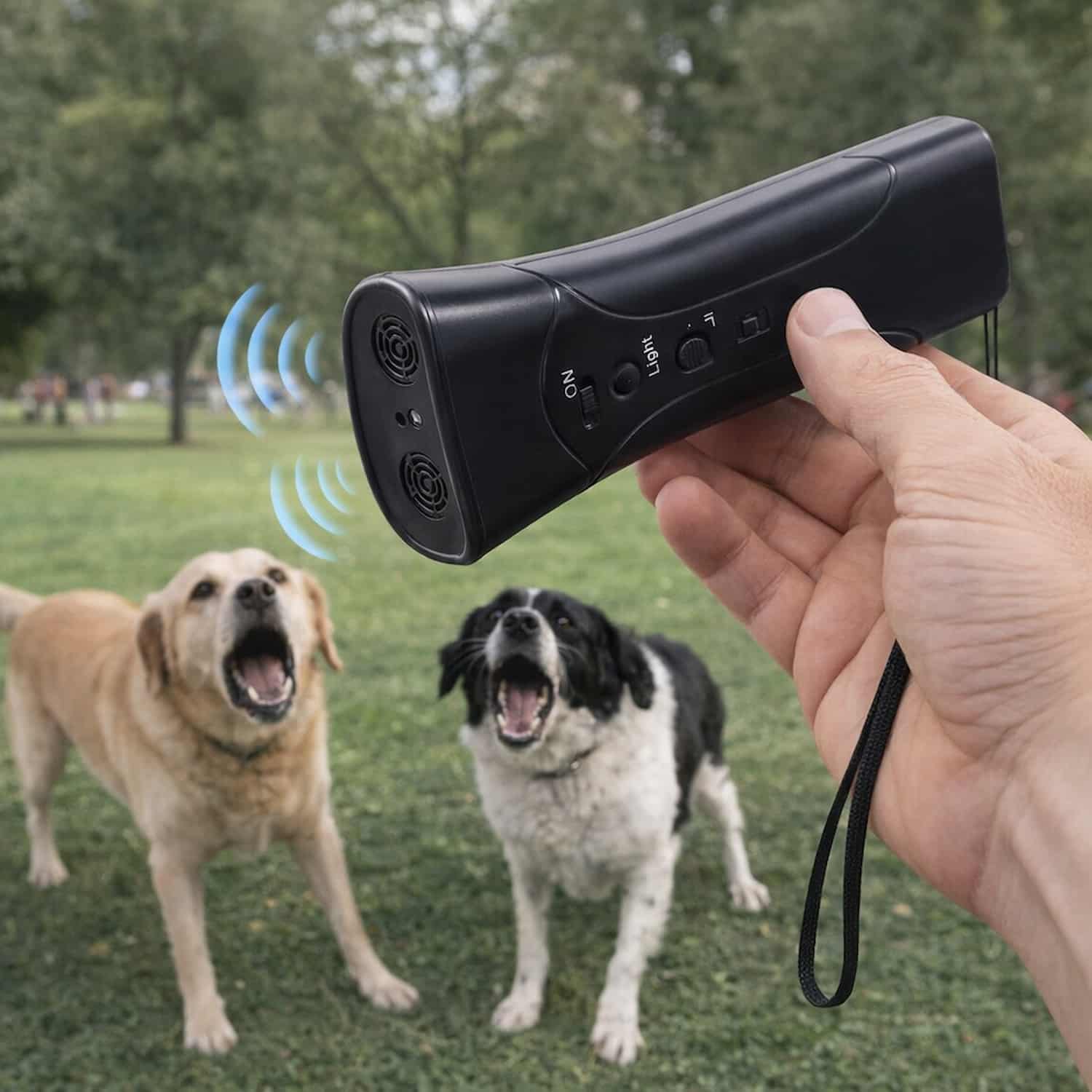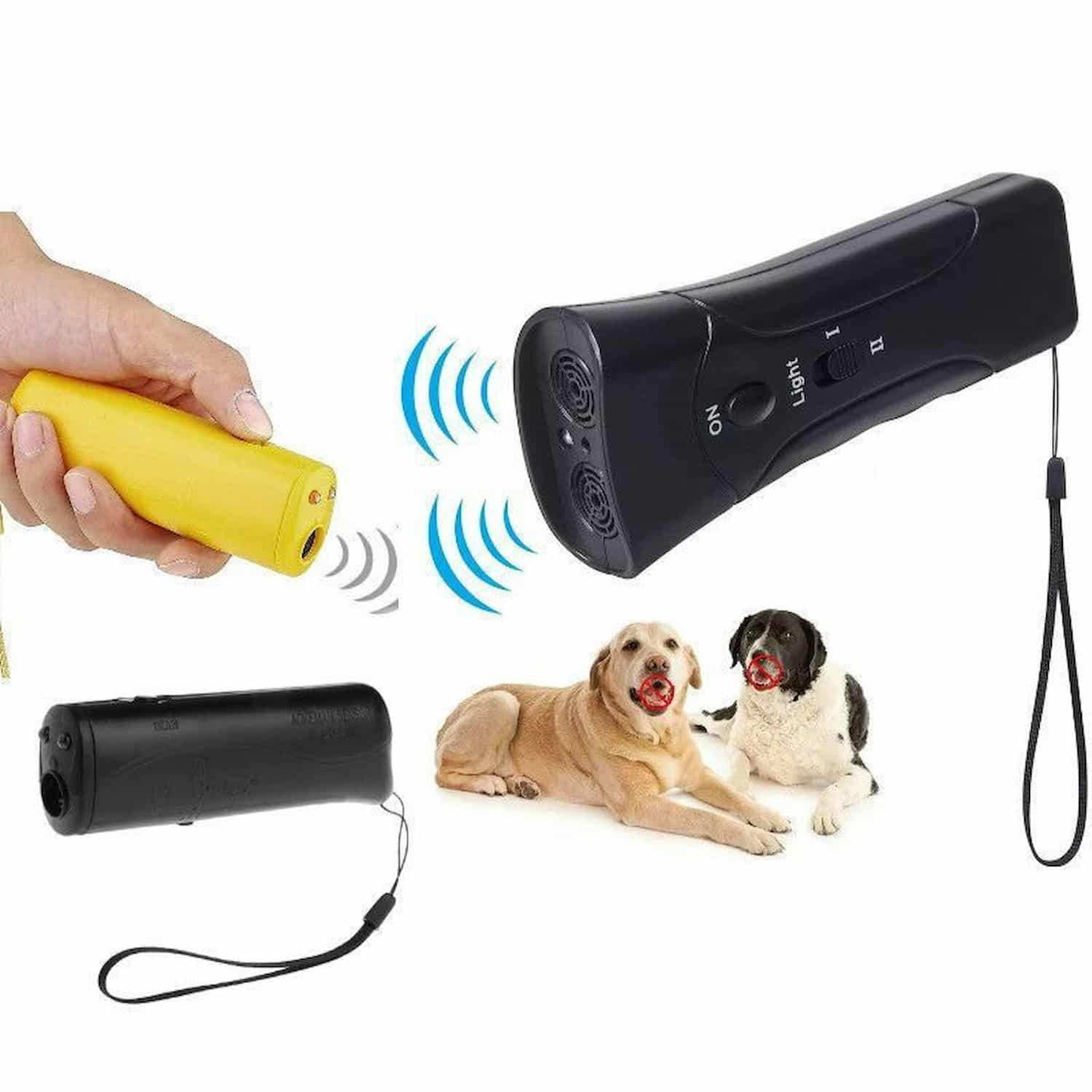 Handheld ultrasonic bark stopper that interrupts barking from a distance using a frequency only dogs hear.